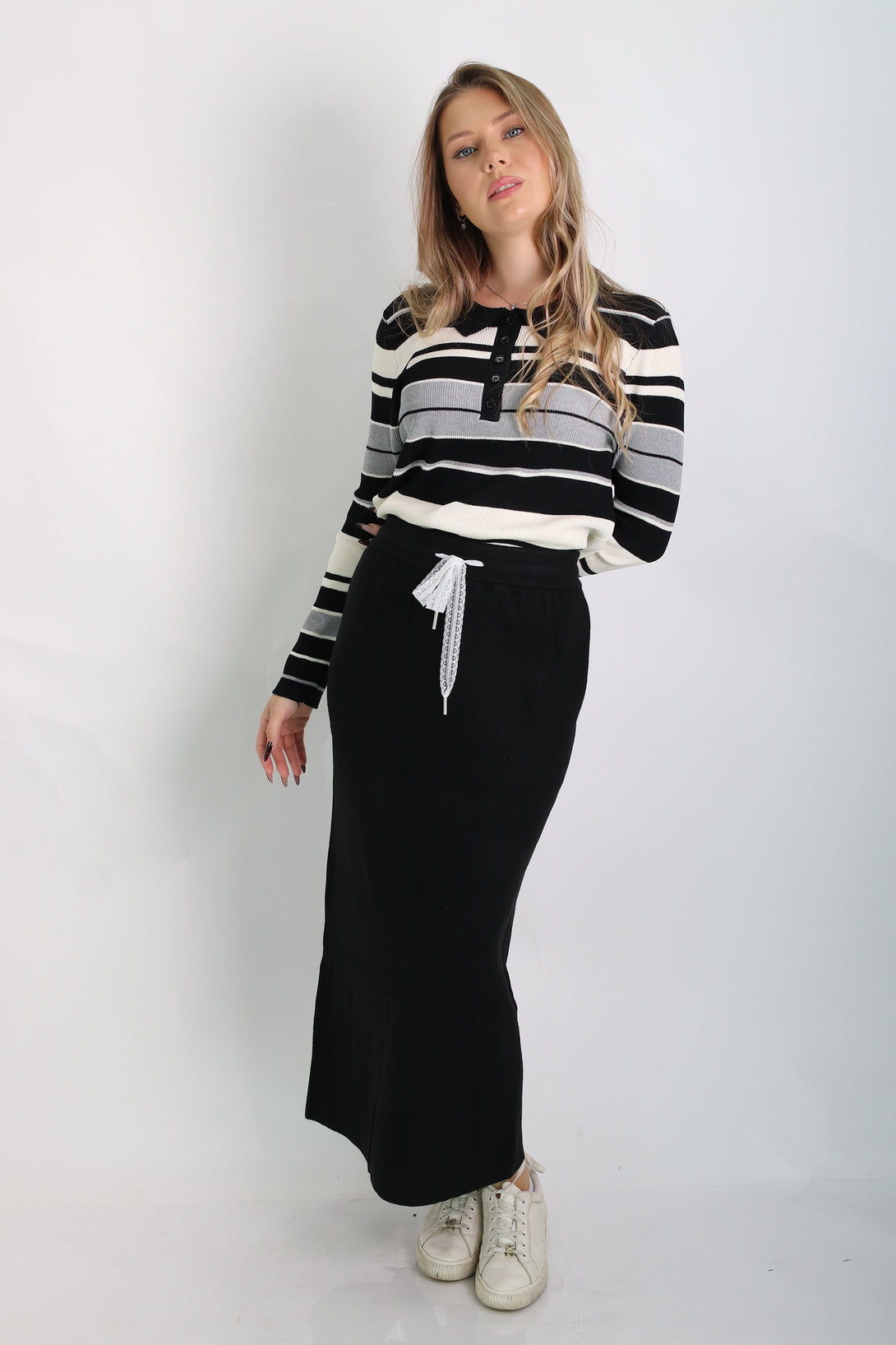 חולצת סריג פולו פסים עם צווארון וכפתורים בחלק העליון. בד נמתח. מתאימה למידות S-L