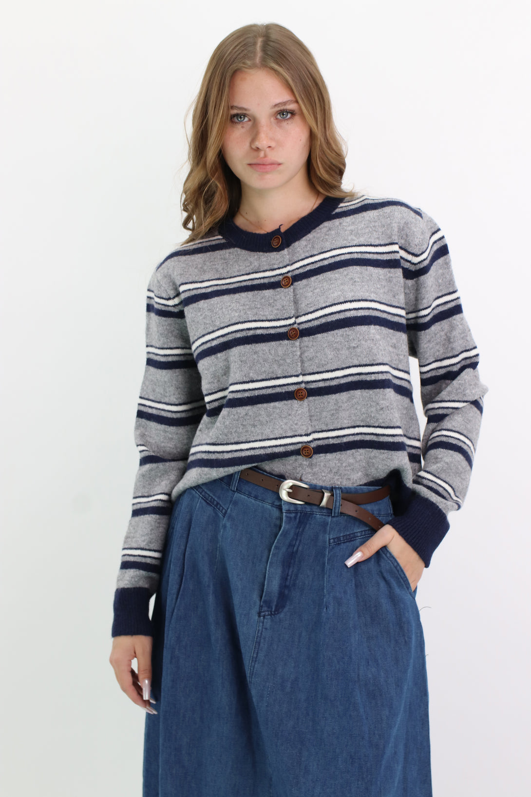 חולצת סריג משולבת כפתורים מבד פלנל סופר נעימה