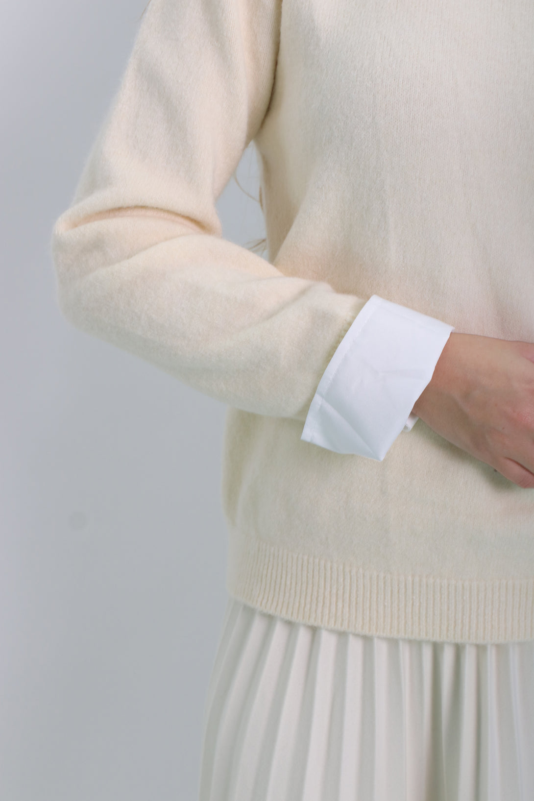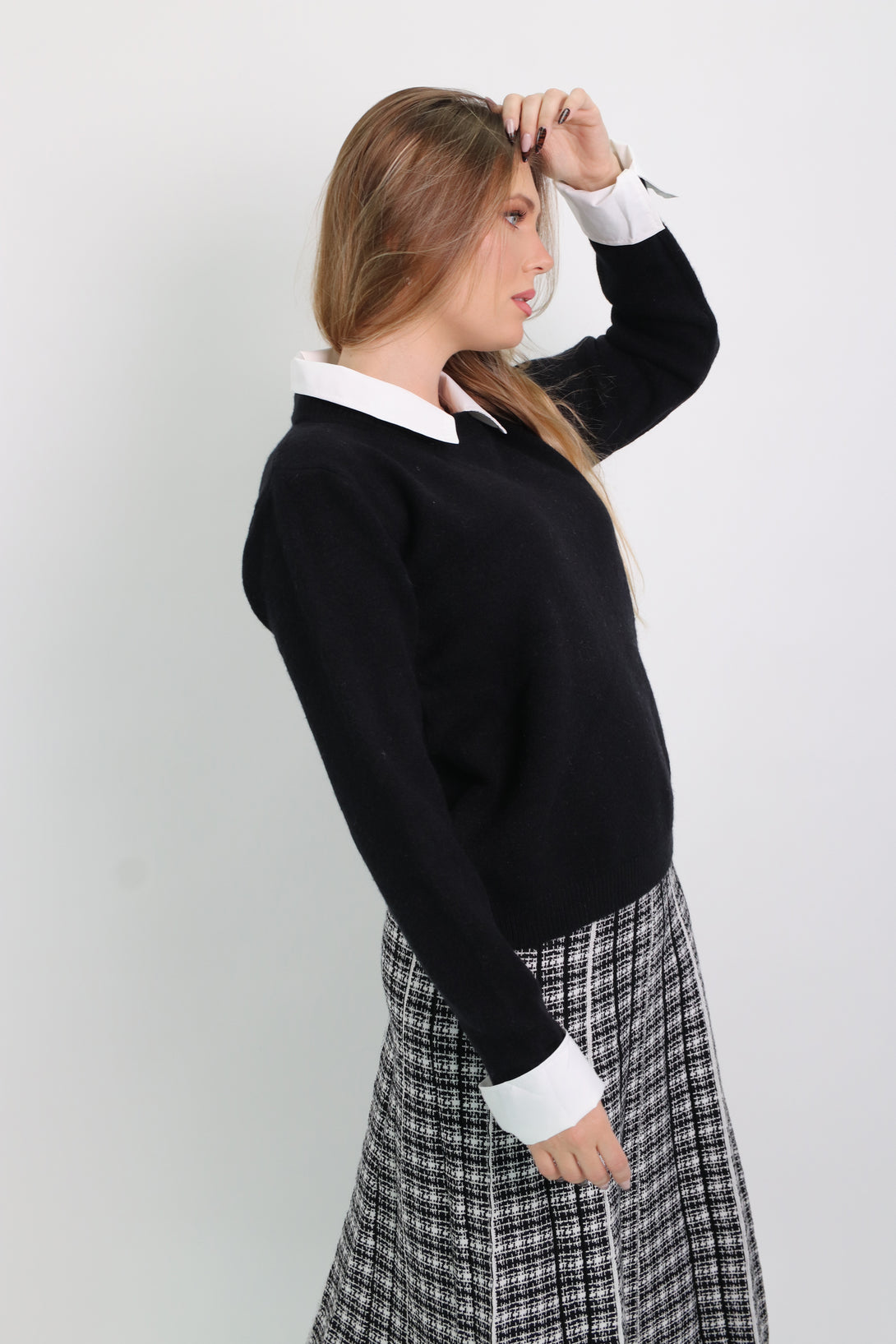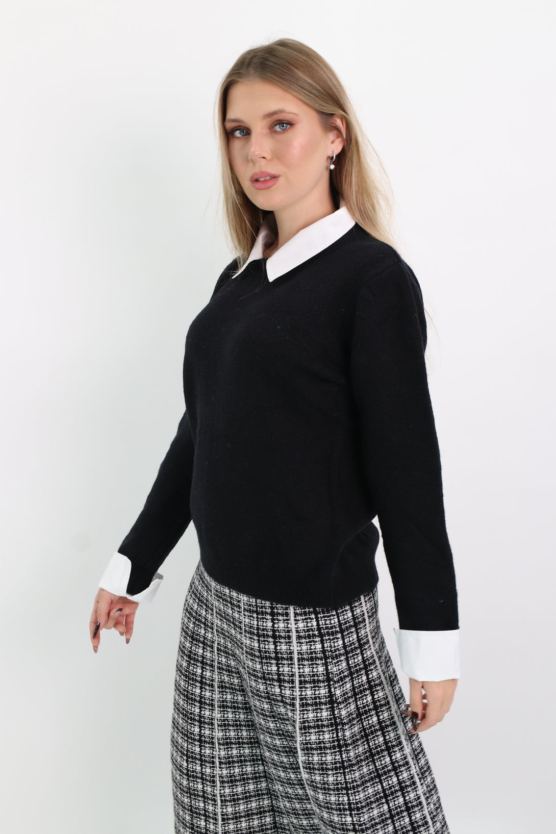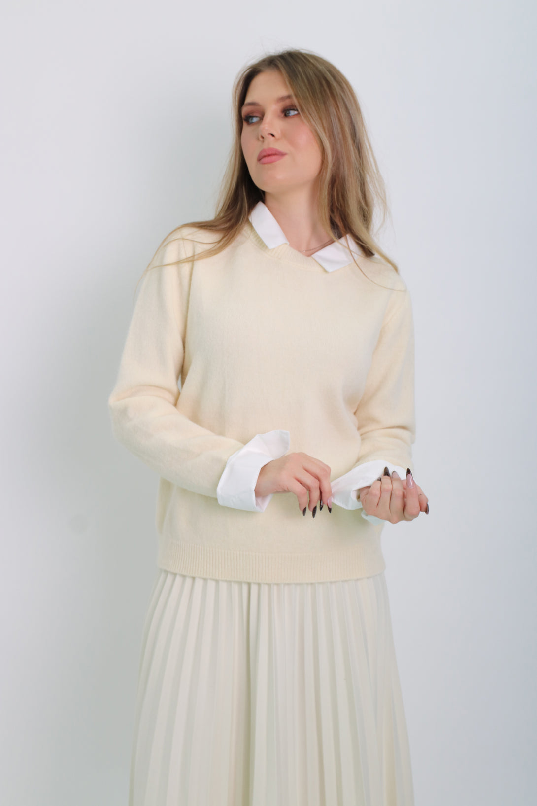 סריג משולב דמוי חולצת אוקספורד לבנה