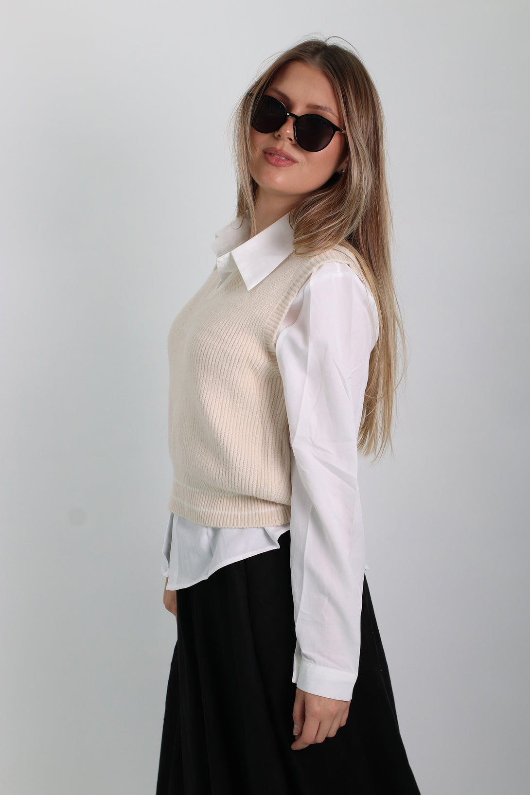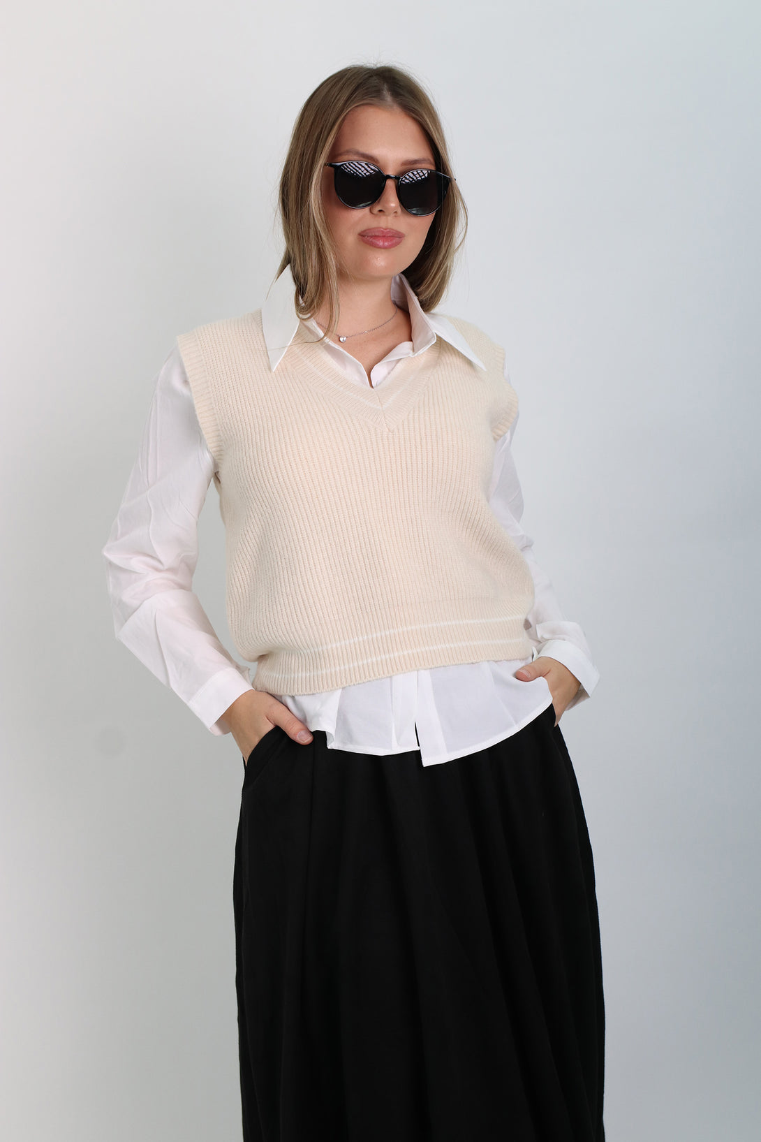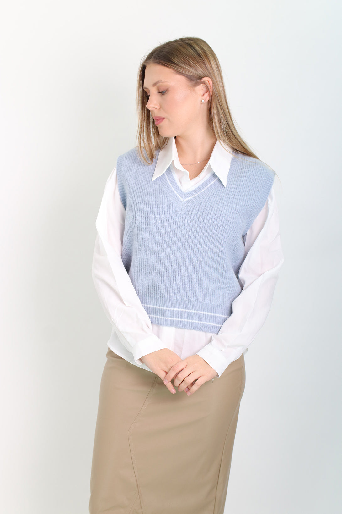 חולצת אוקספורד לבנה משולבת אפודה