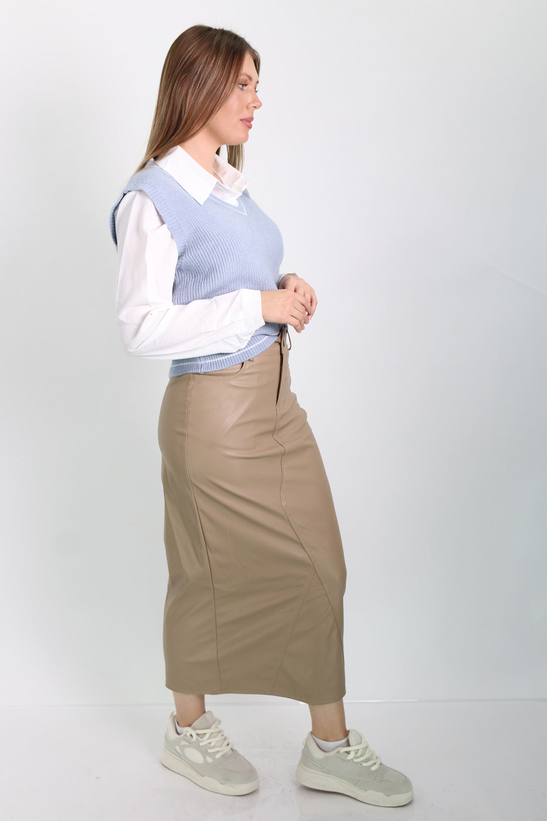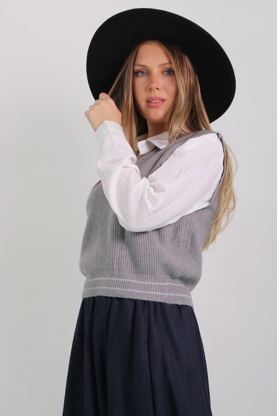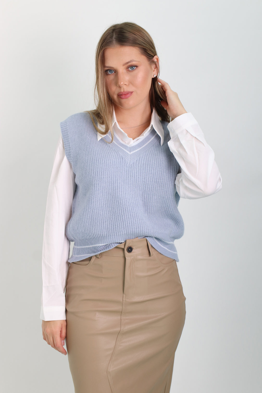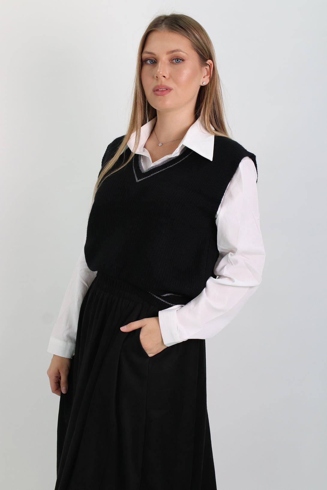 חולצת אוקספורד לבנה משולבת אפודה