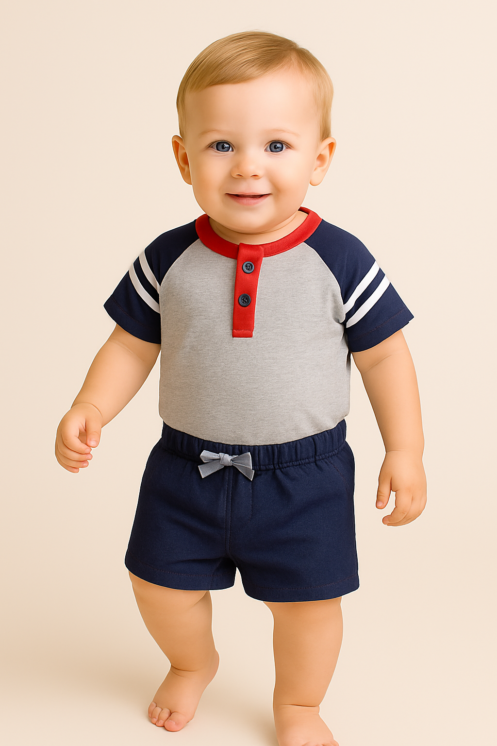 חליפה קצרה פסים אפור-אדום