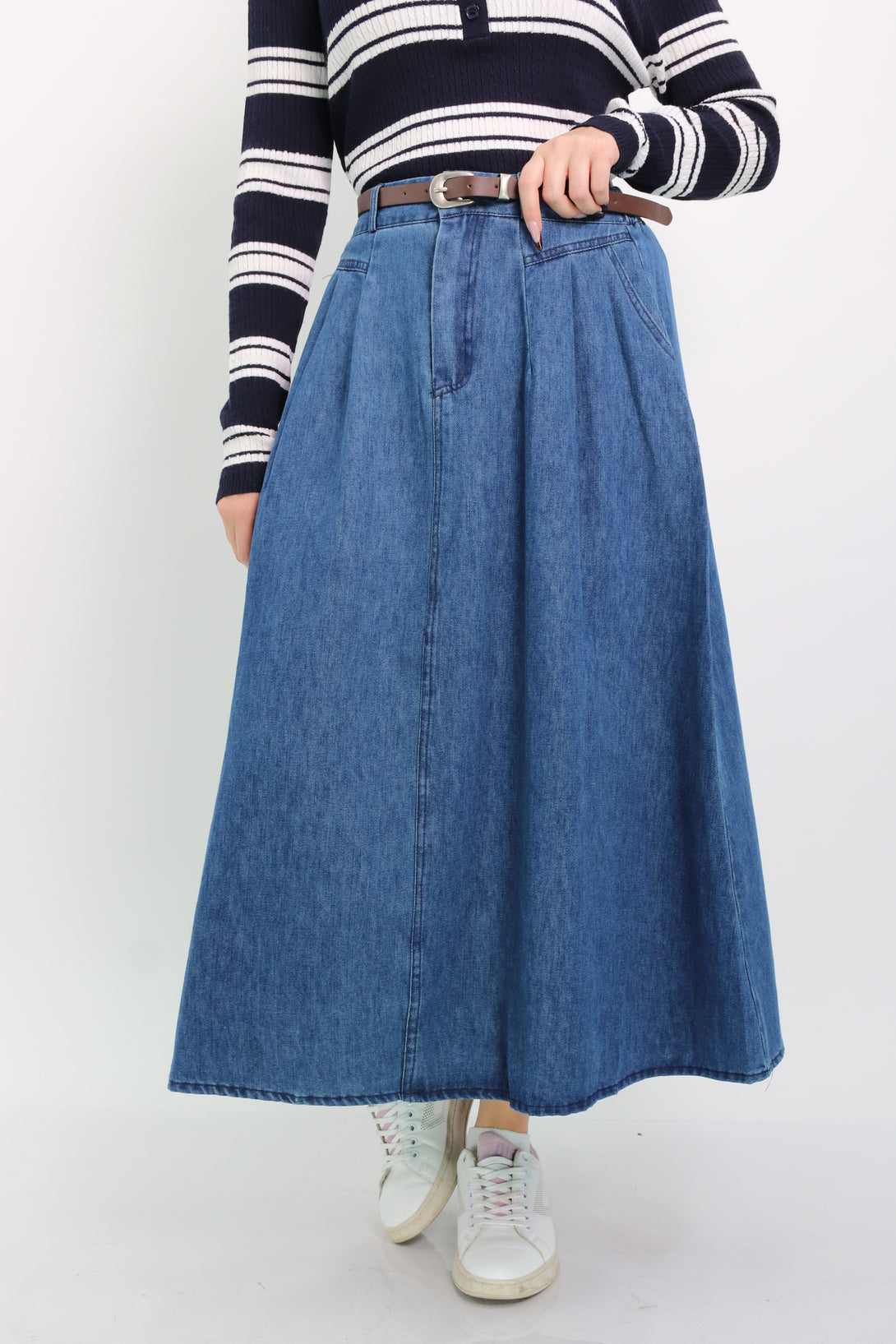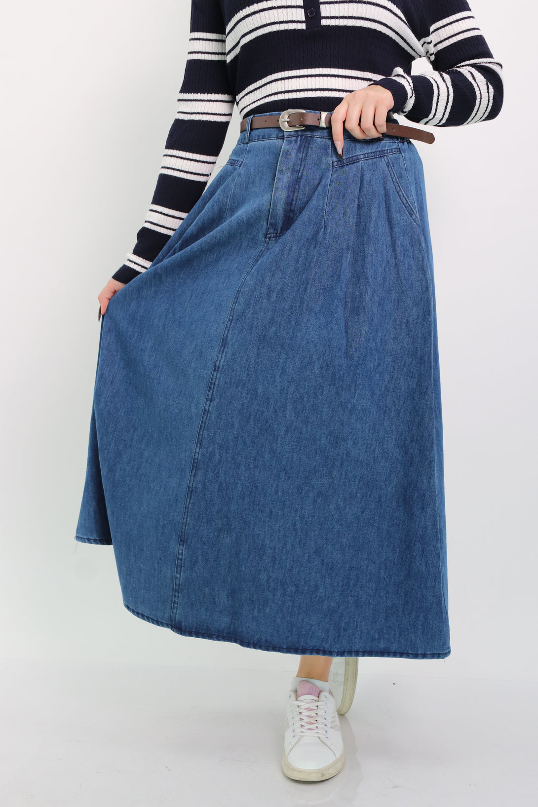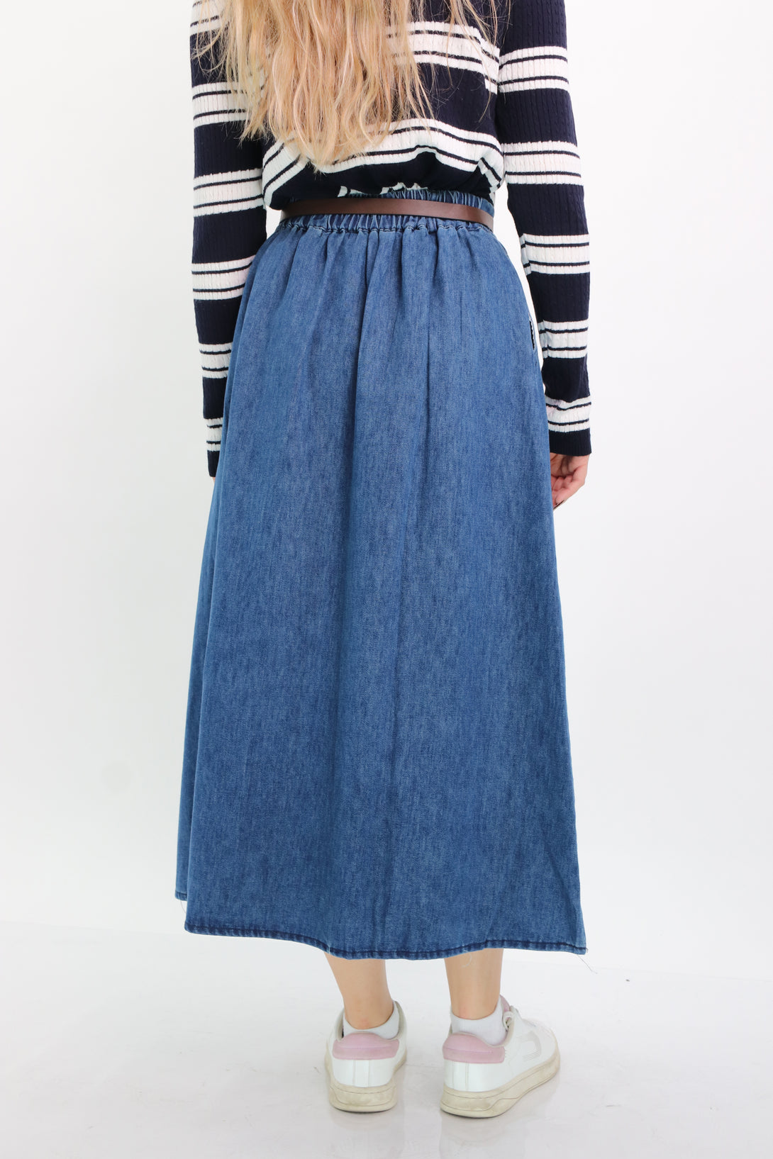 חצאית גינס קלוש משולבת סגירת כפתור וחגורה
