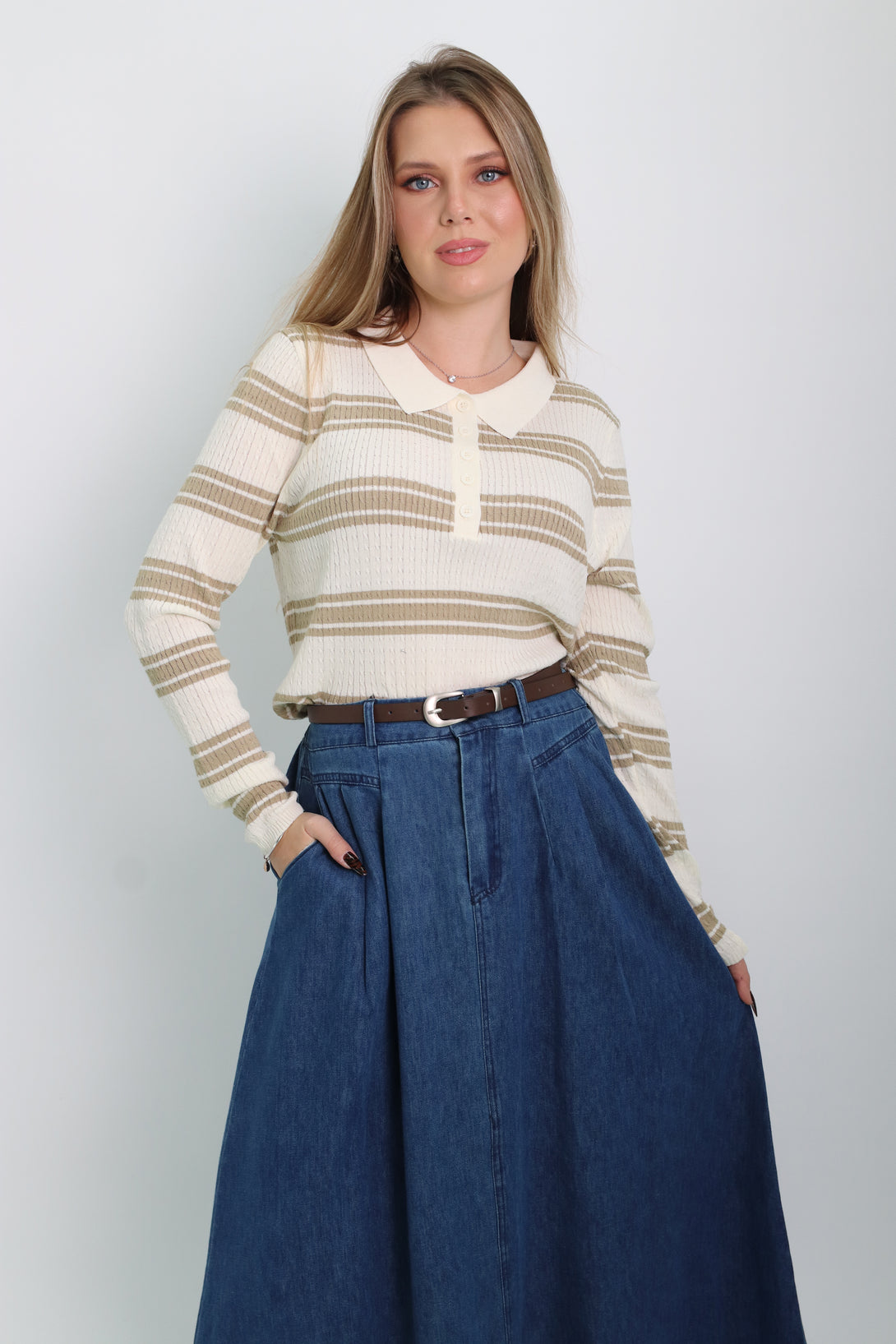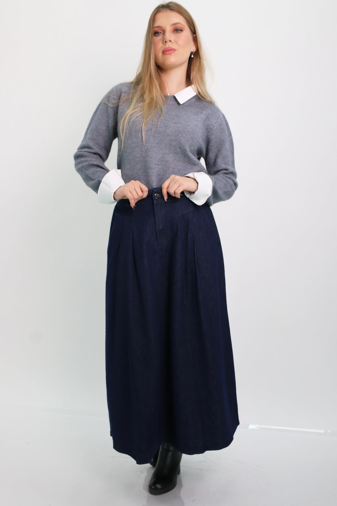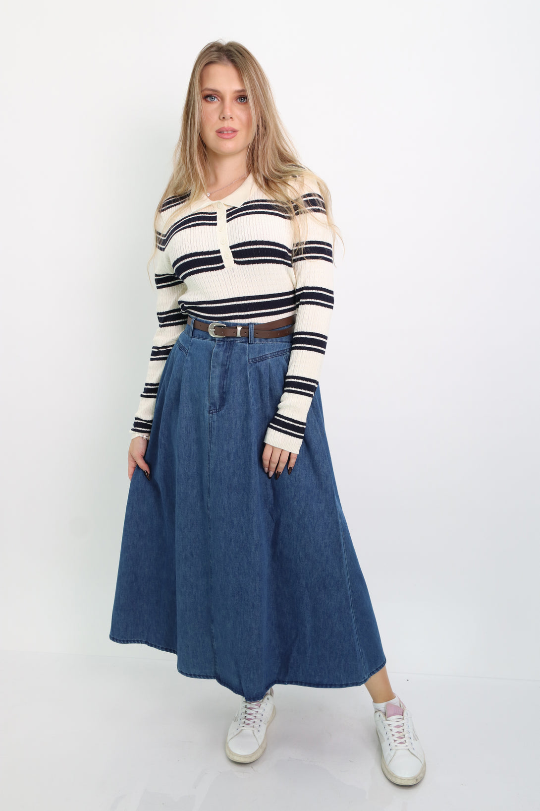 חצאית גינס קלוש משולבת סגירת כפתור וחגורה