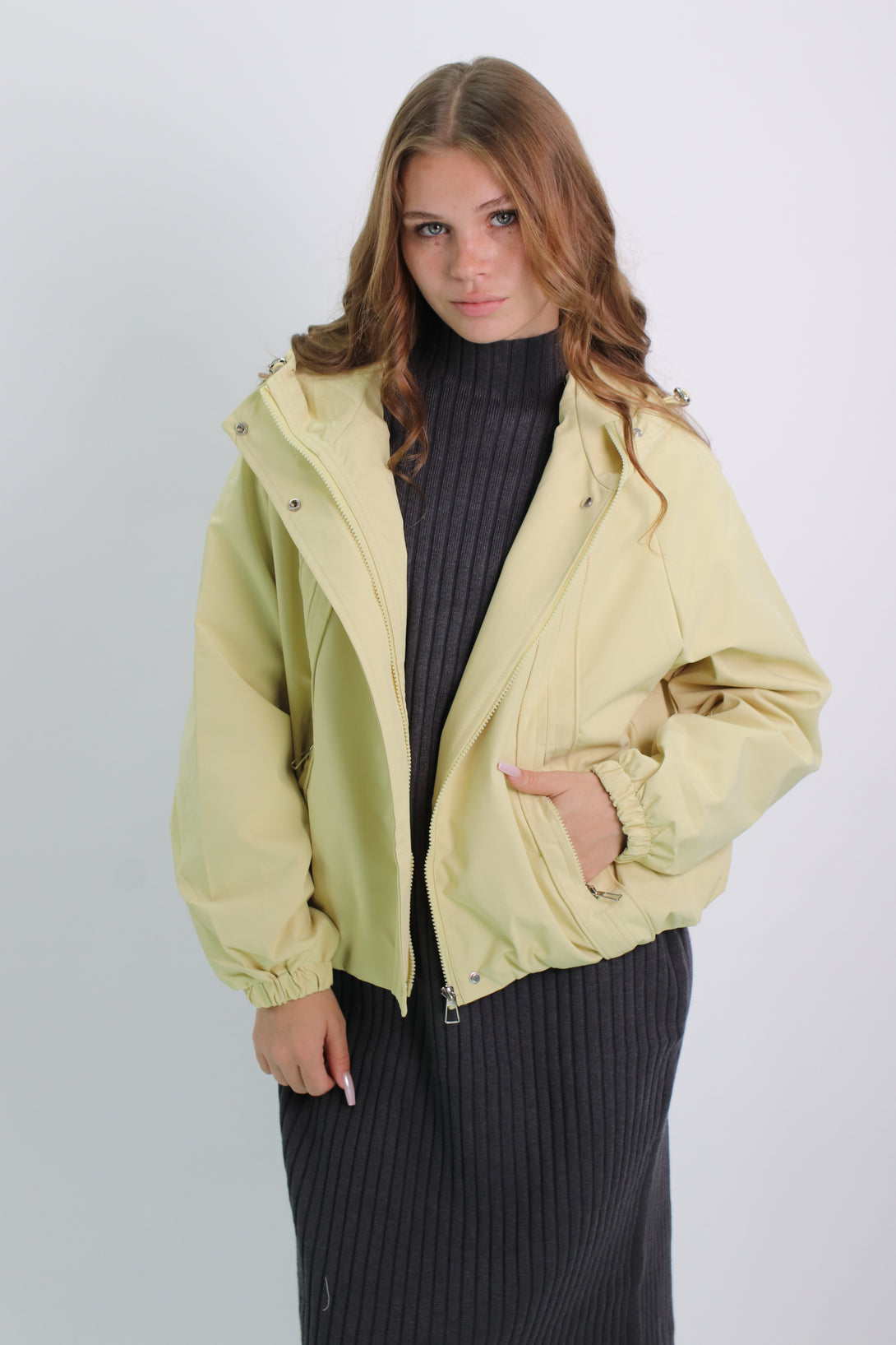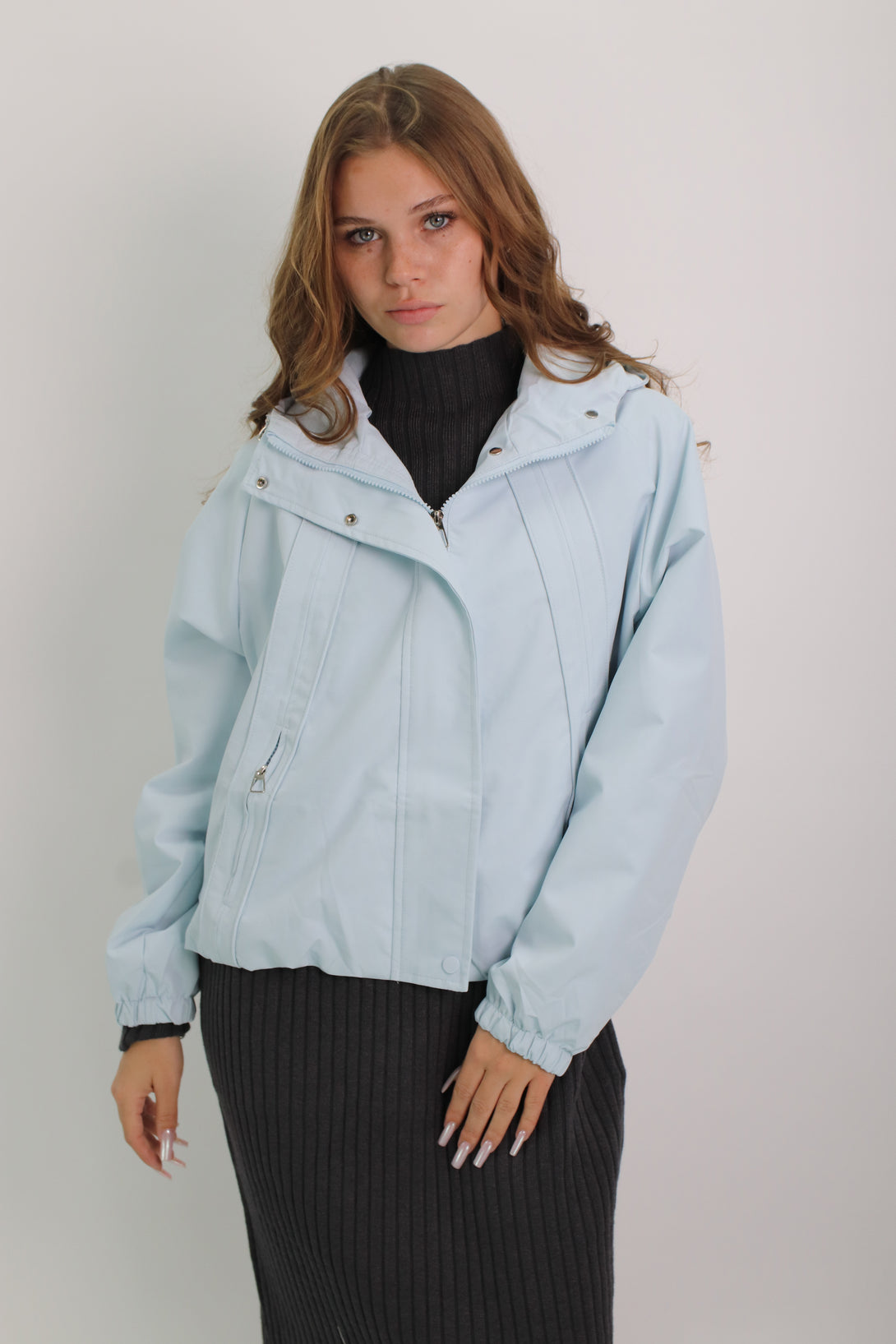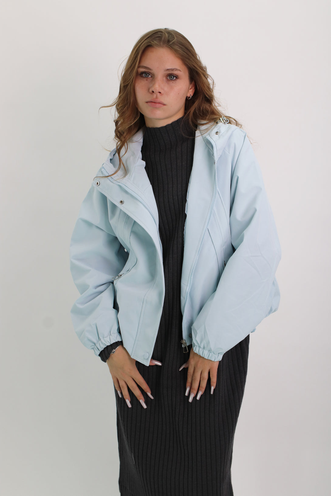 מעיל ניילון משולב סגירת רוכסן וכובע