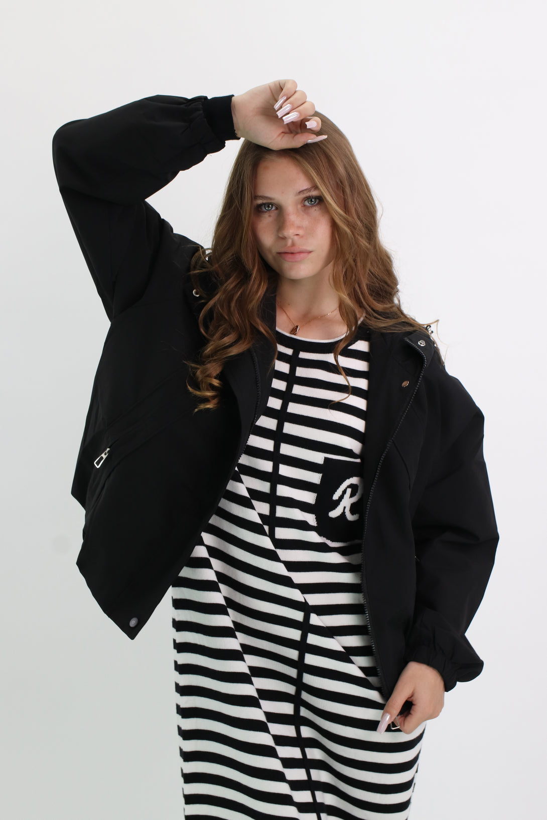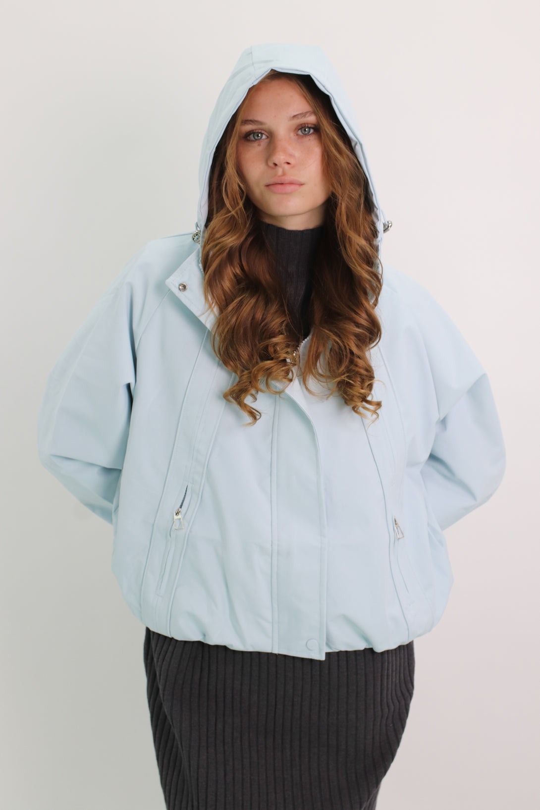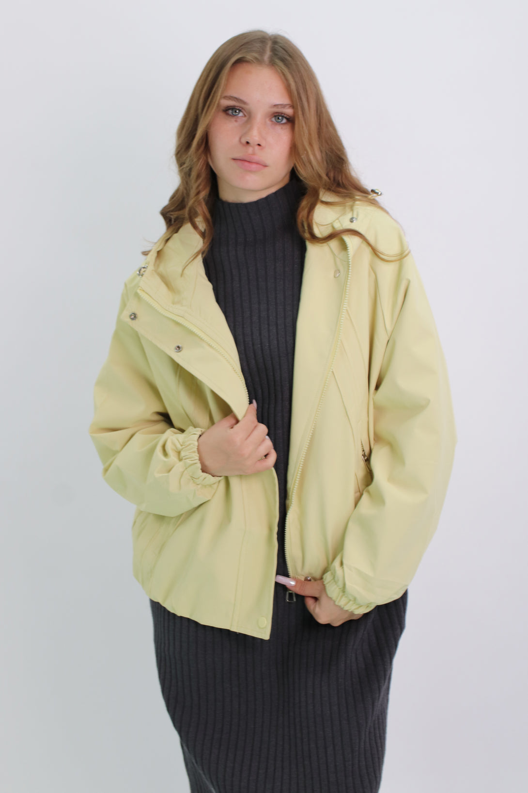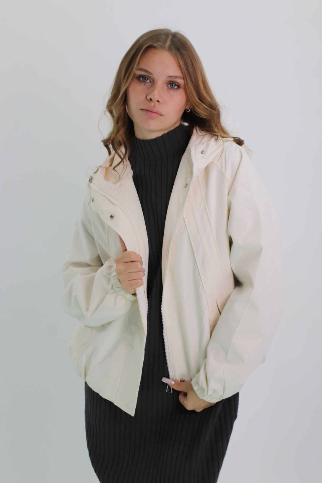 מעיל ניילון משולב סגירת רוכסן וכובע