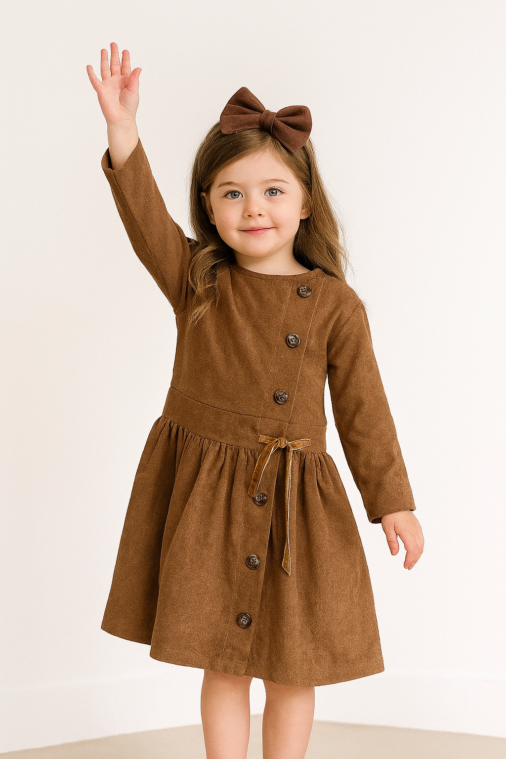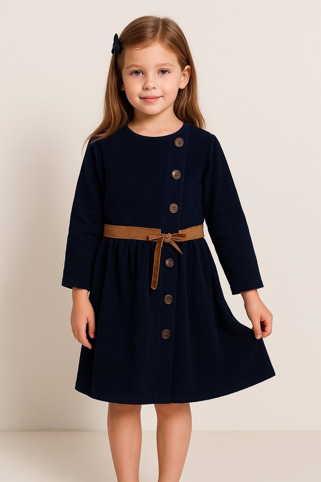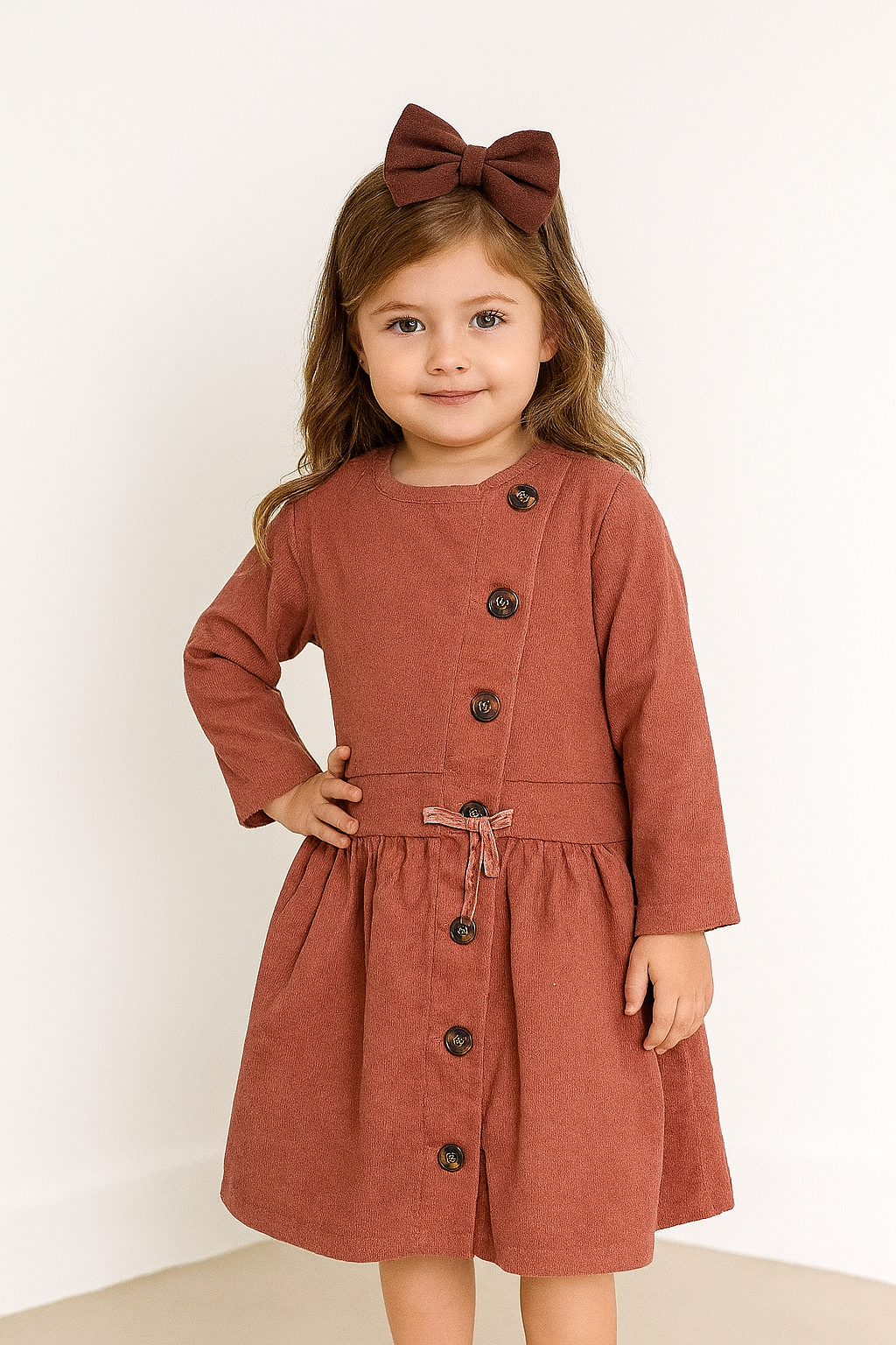 שמלת קלוש משולבת קשירה במותן וכפתורים לאורך השמלה