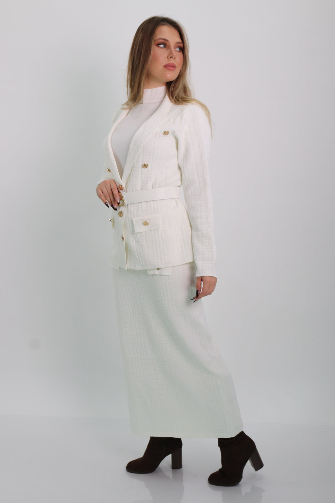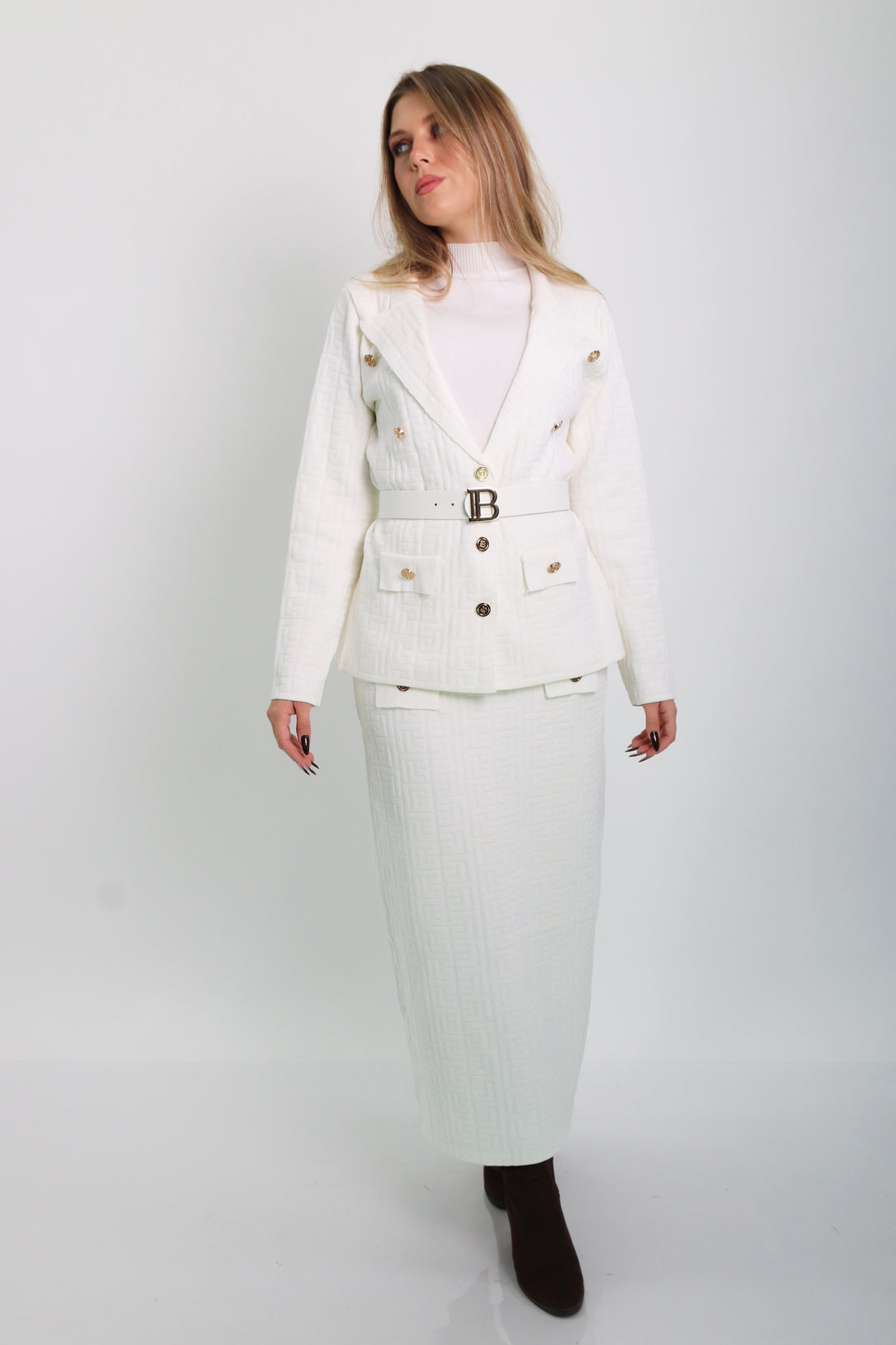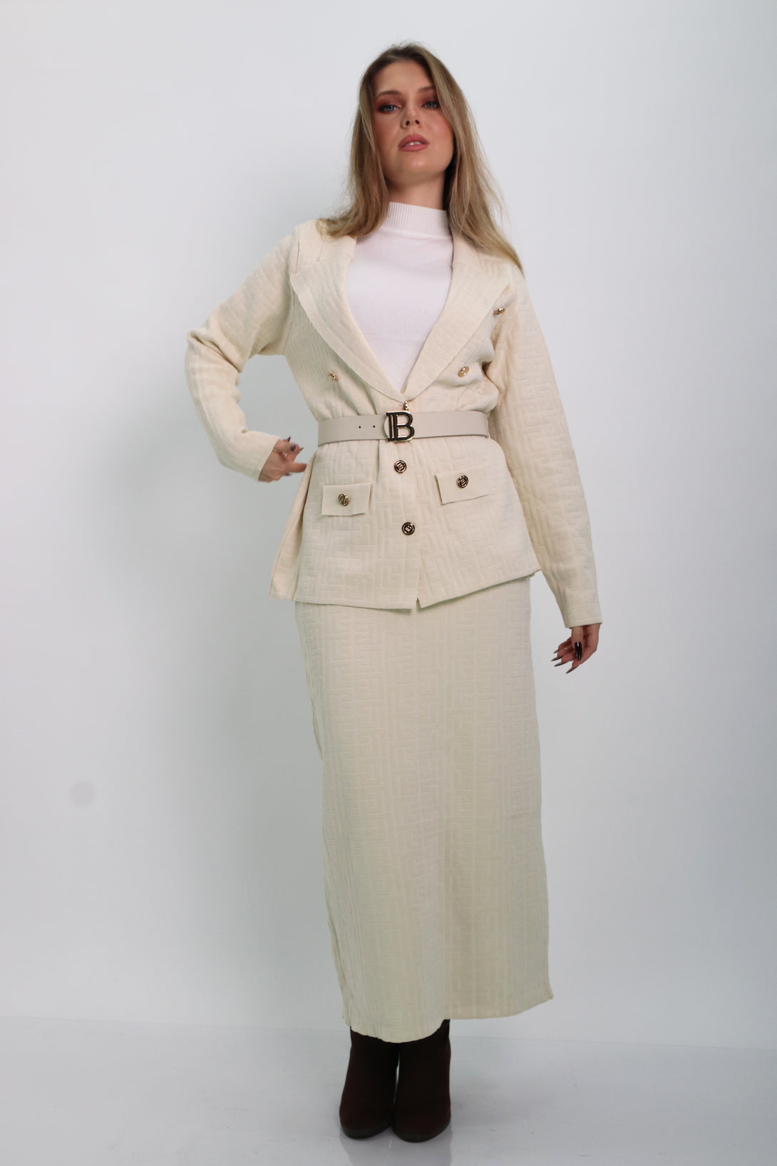 משולבת בלייזר וחצאית כולל חגורה תואמת