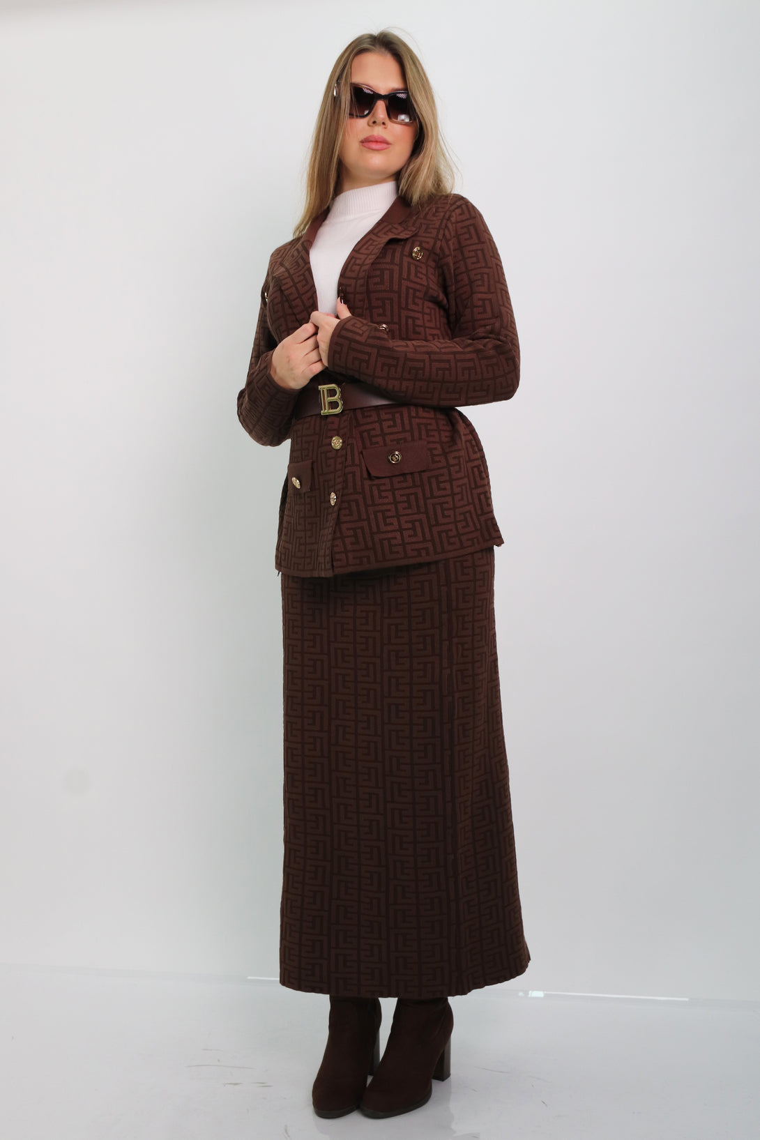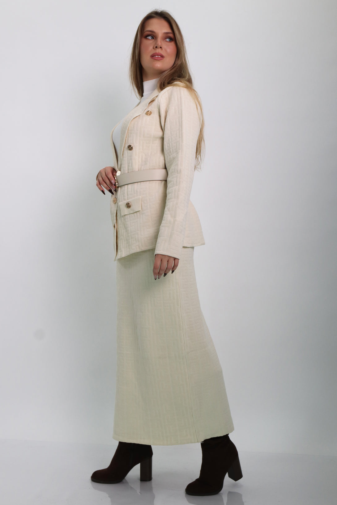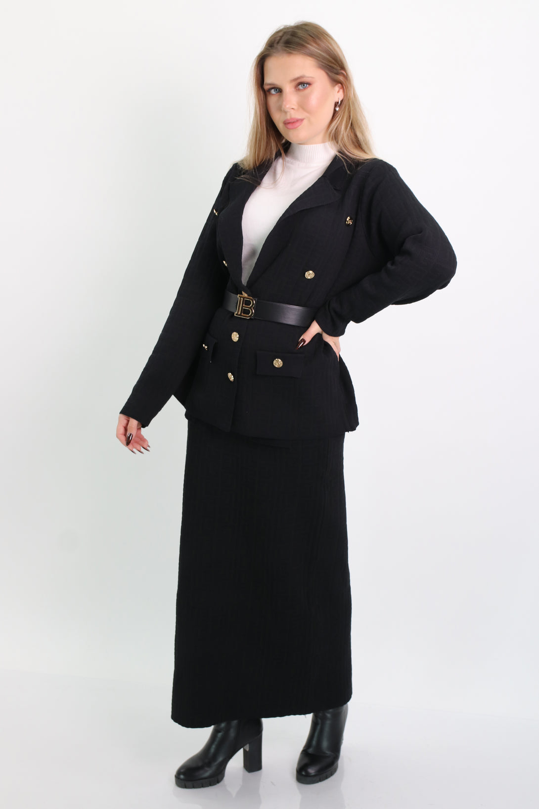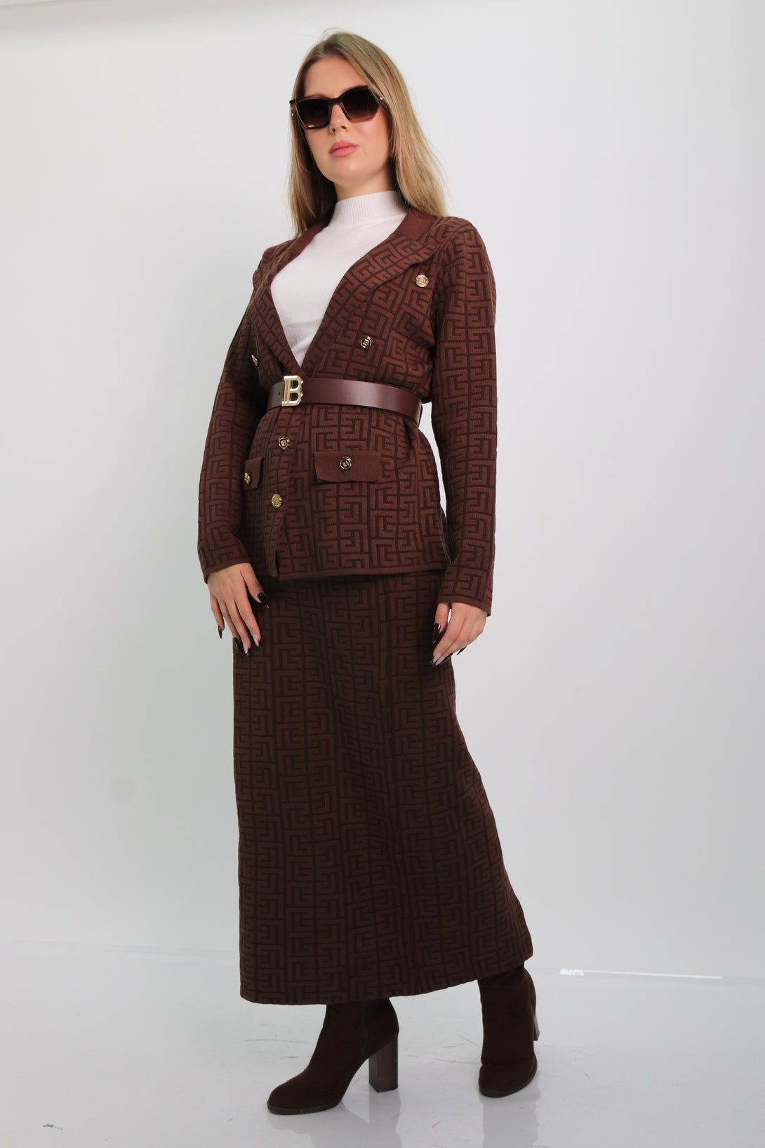 משולבת בלייזר וחצאית כולל חגורה תואמת