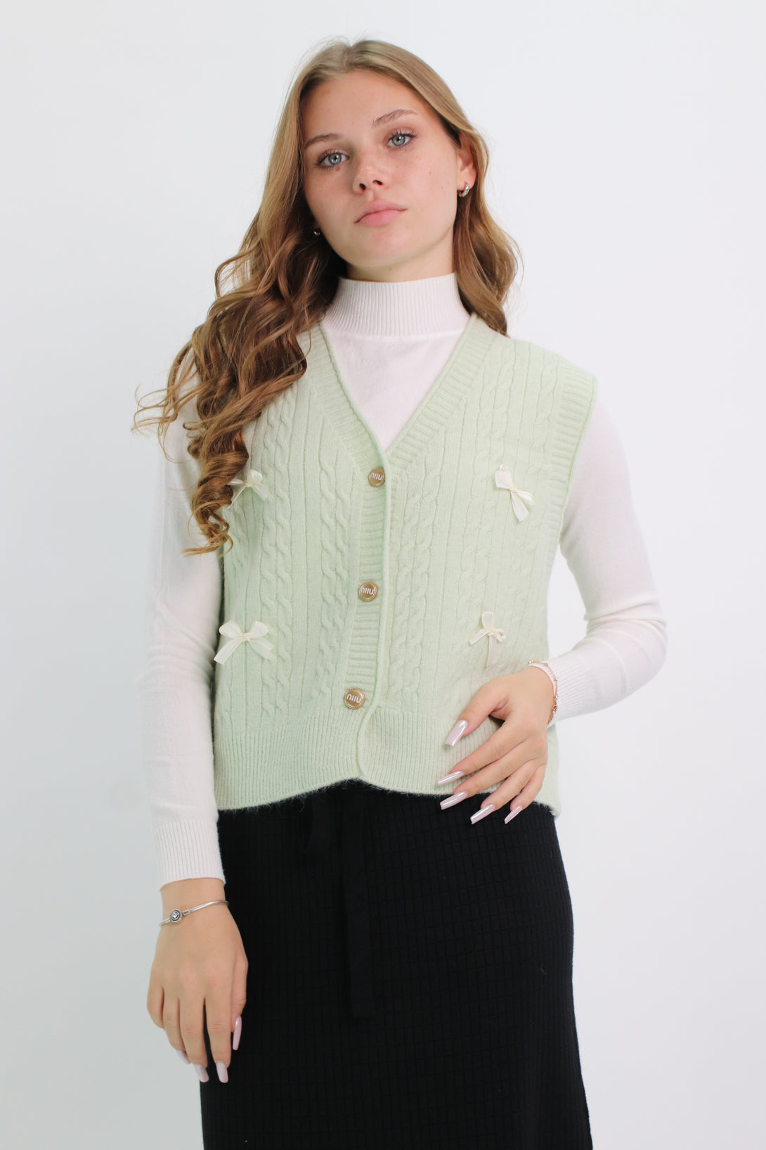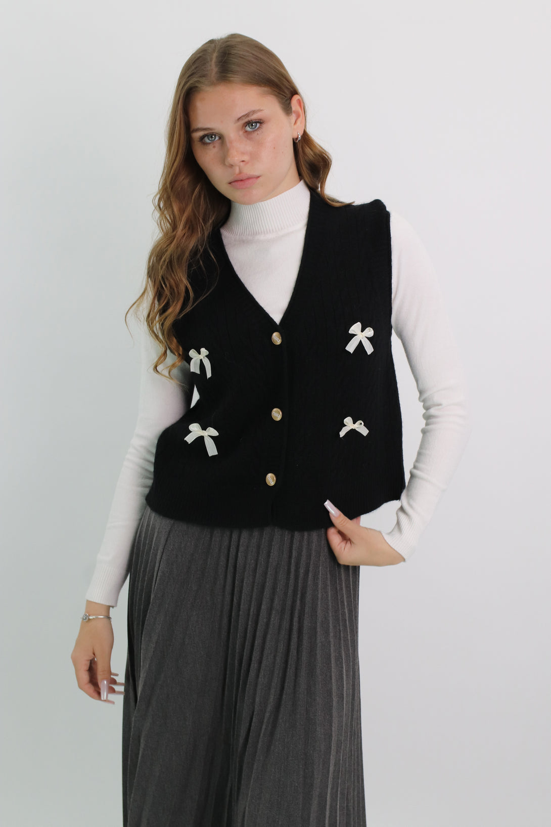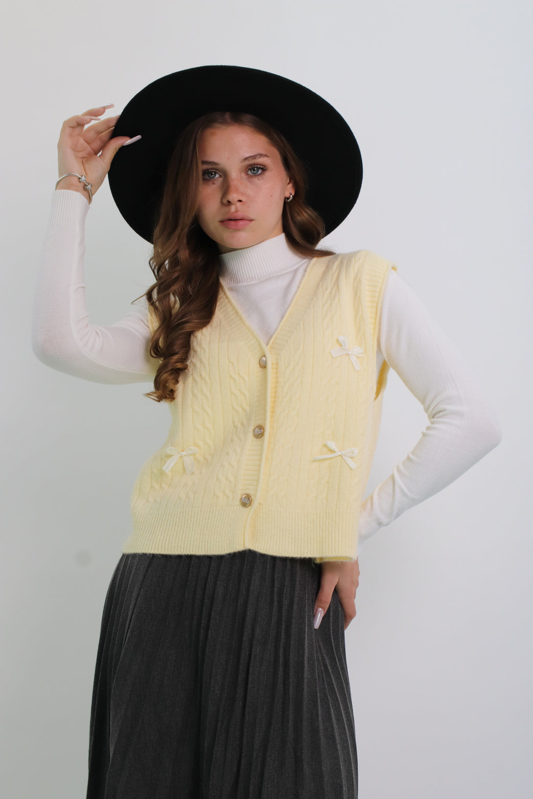 ווסט צמר משולב כפתורים וקשירת פפיון