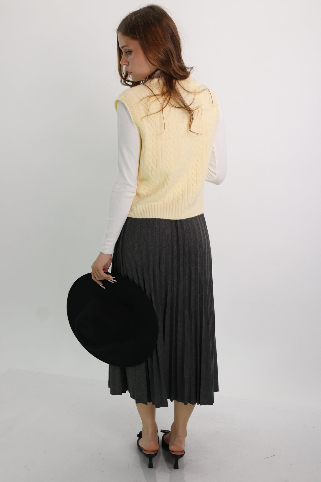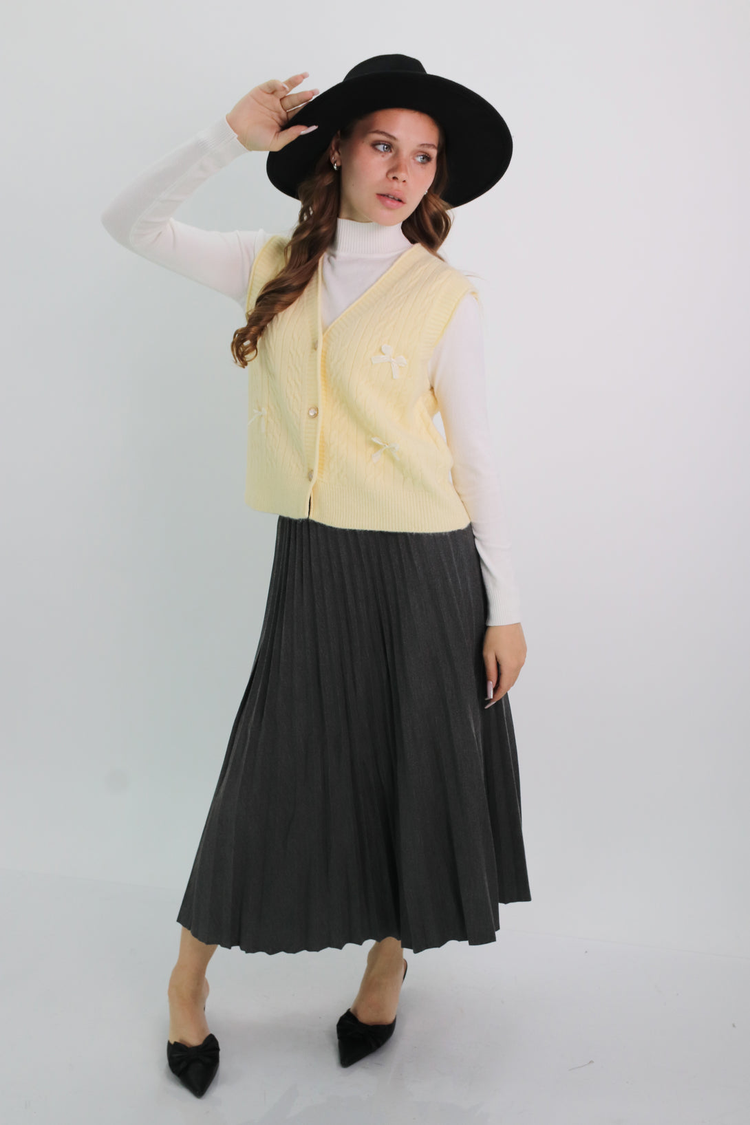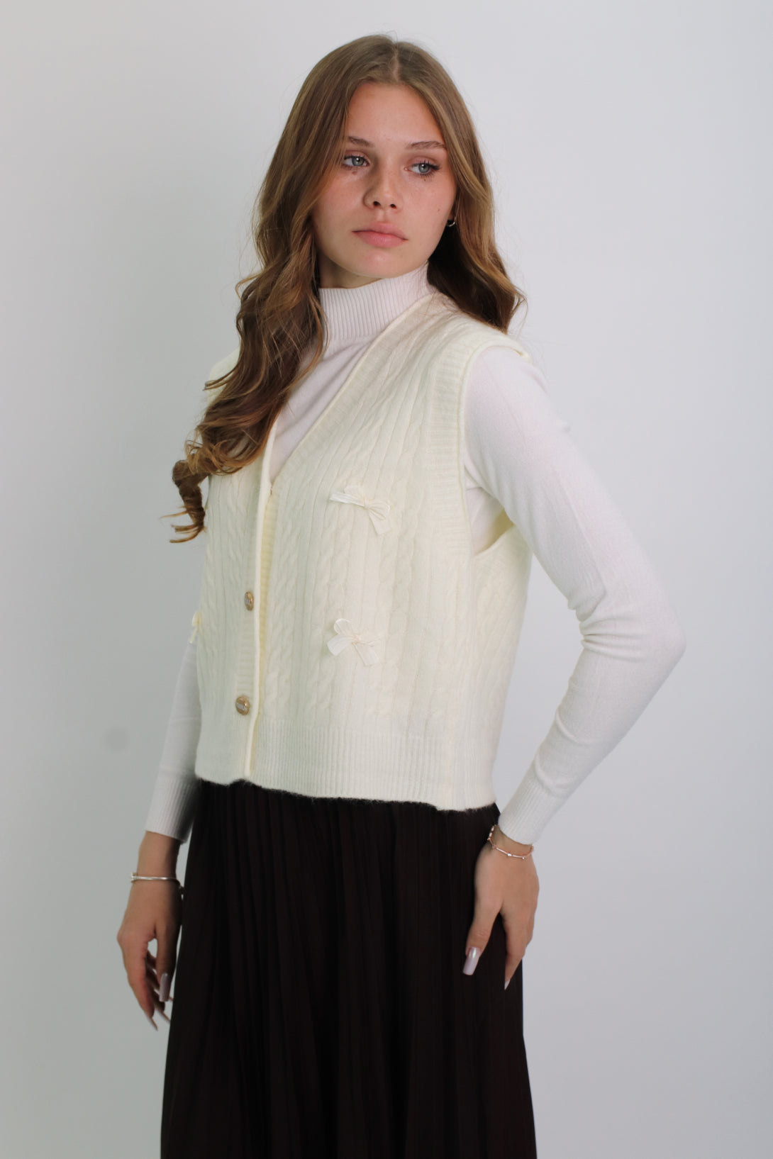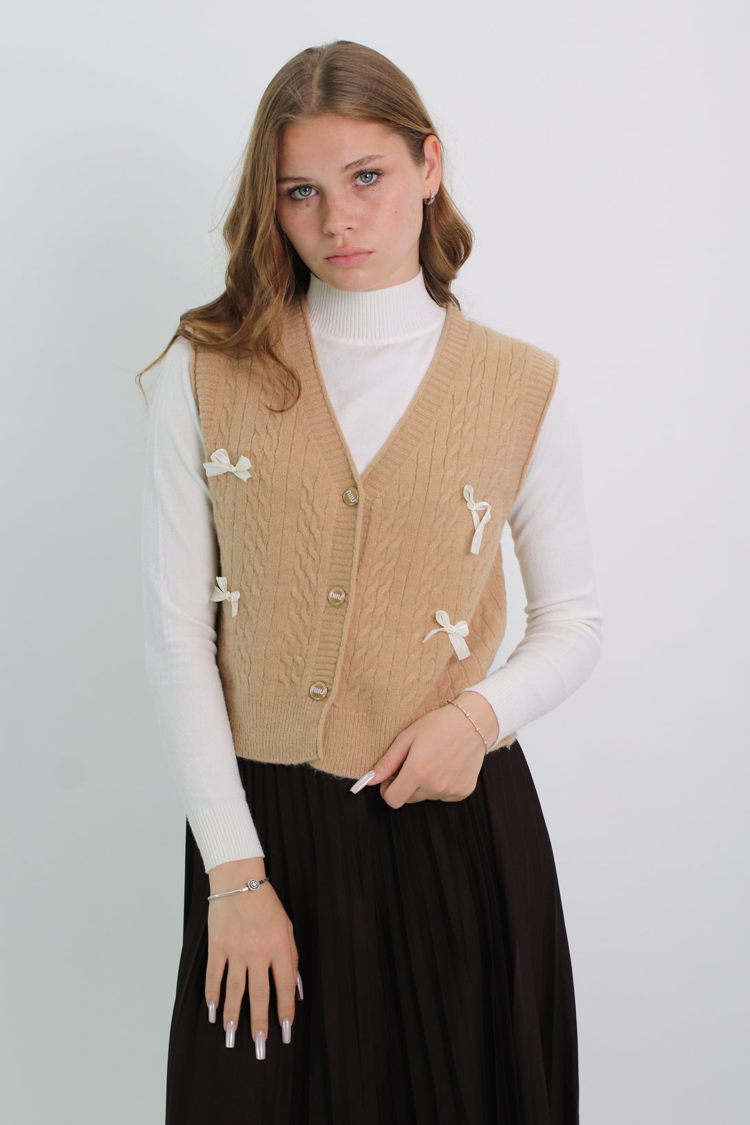ווסט צמר משולב כפתורים וקשירת פפיון