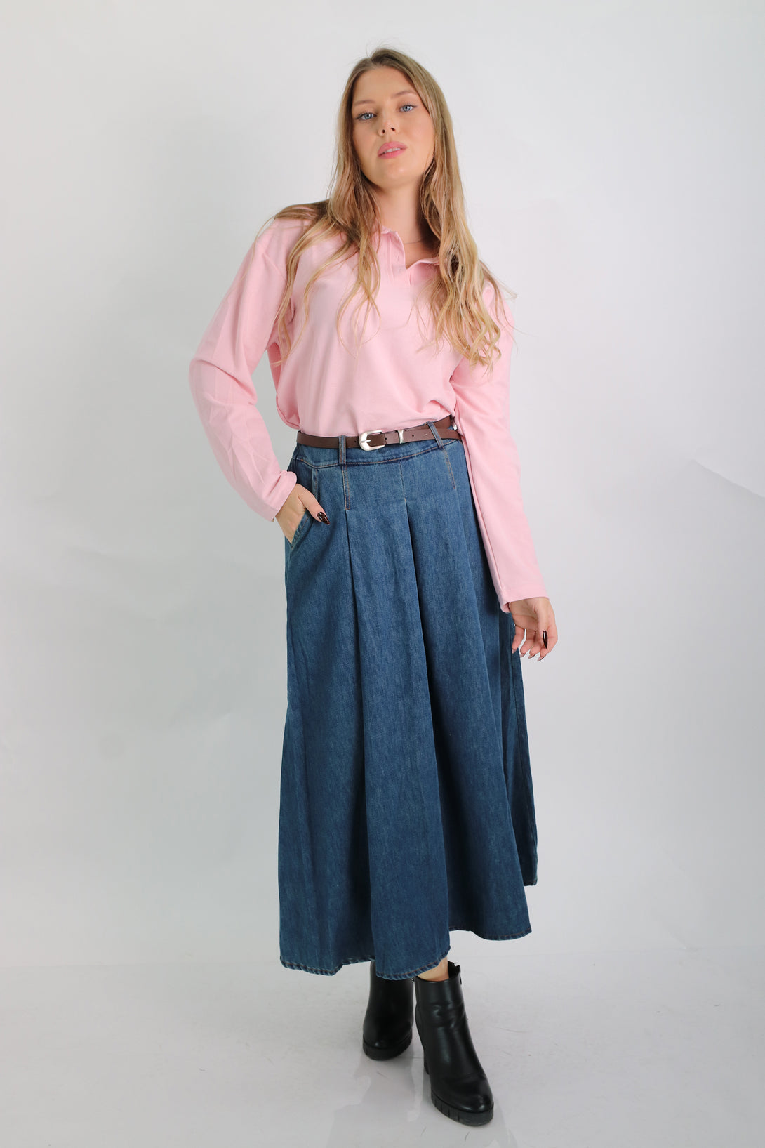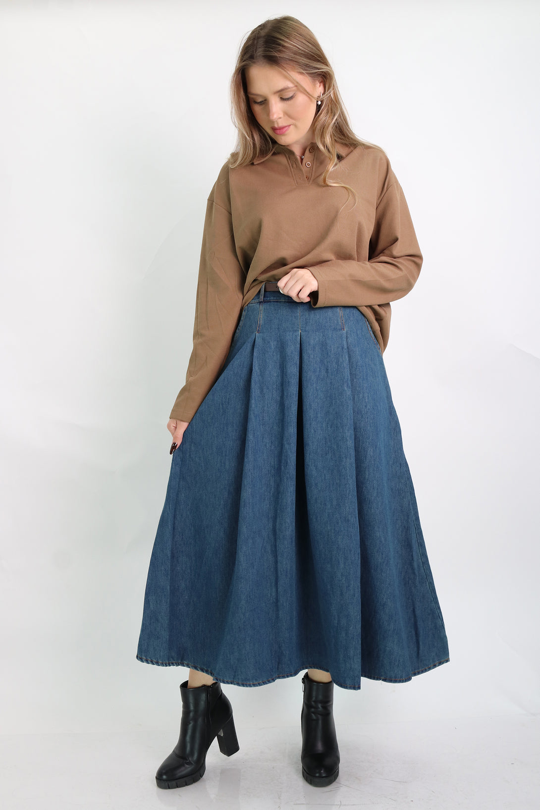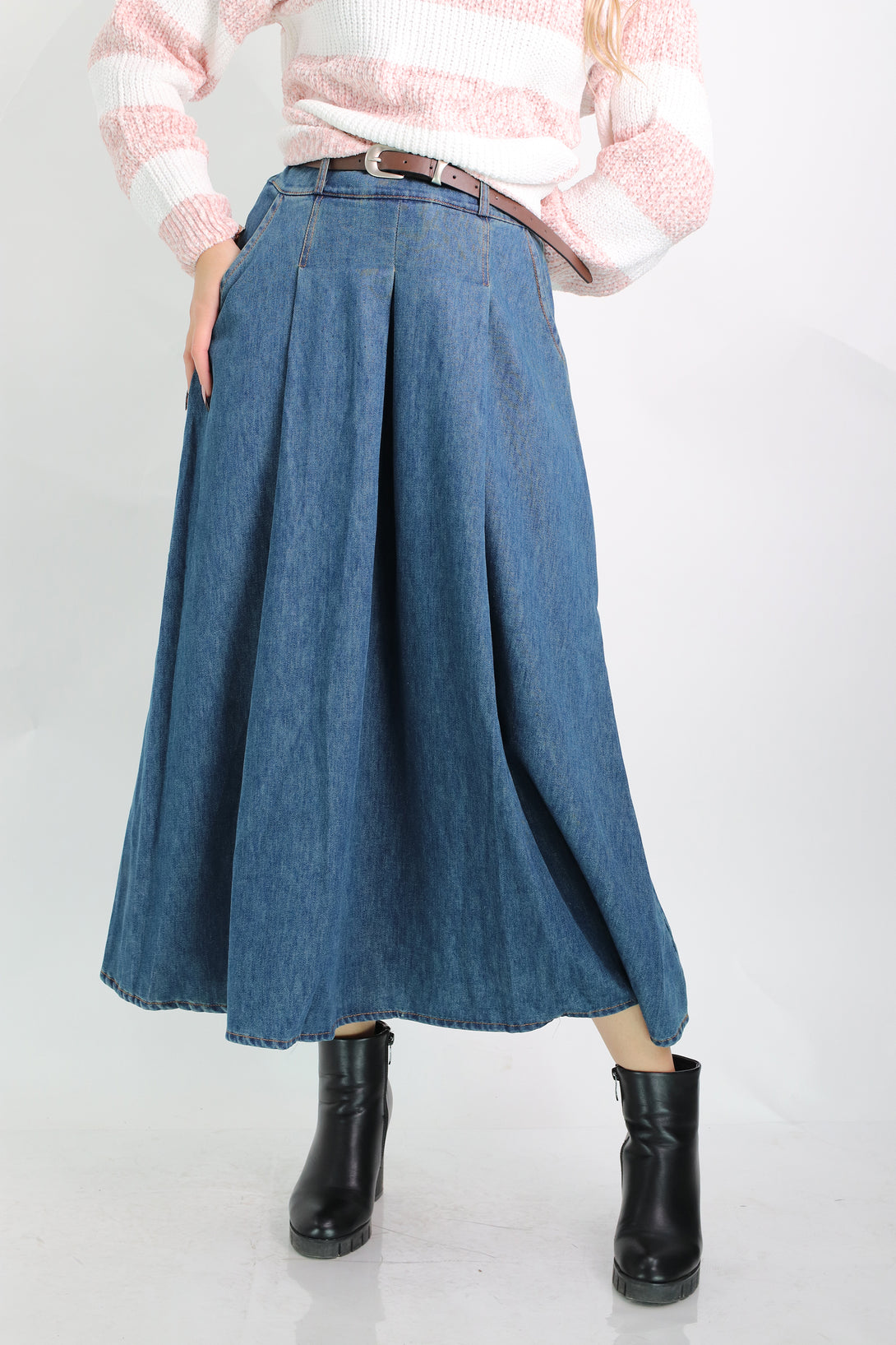 חצאית ג׳ינס מבד דק בגזרת קלוש