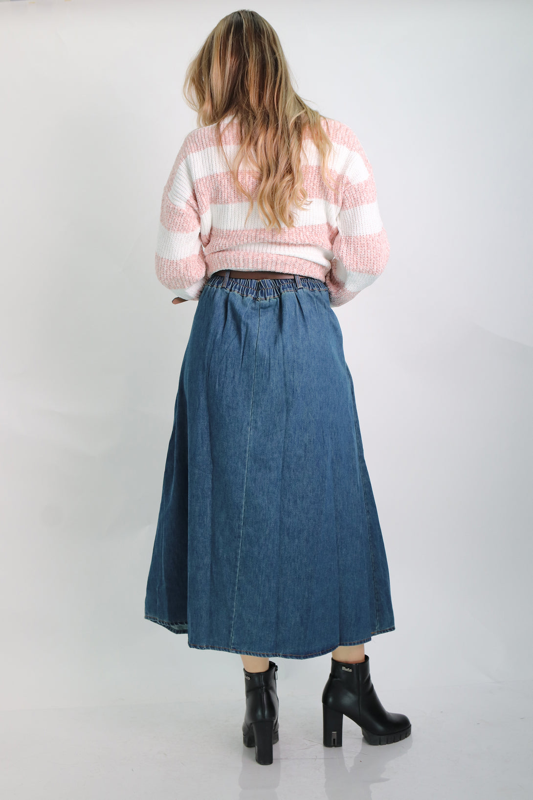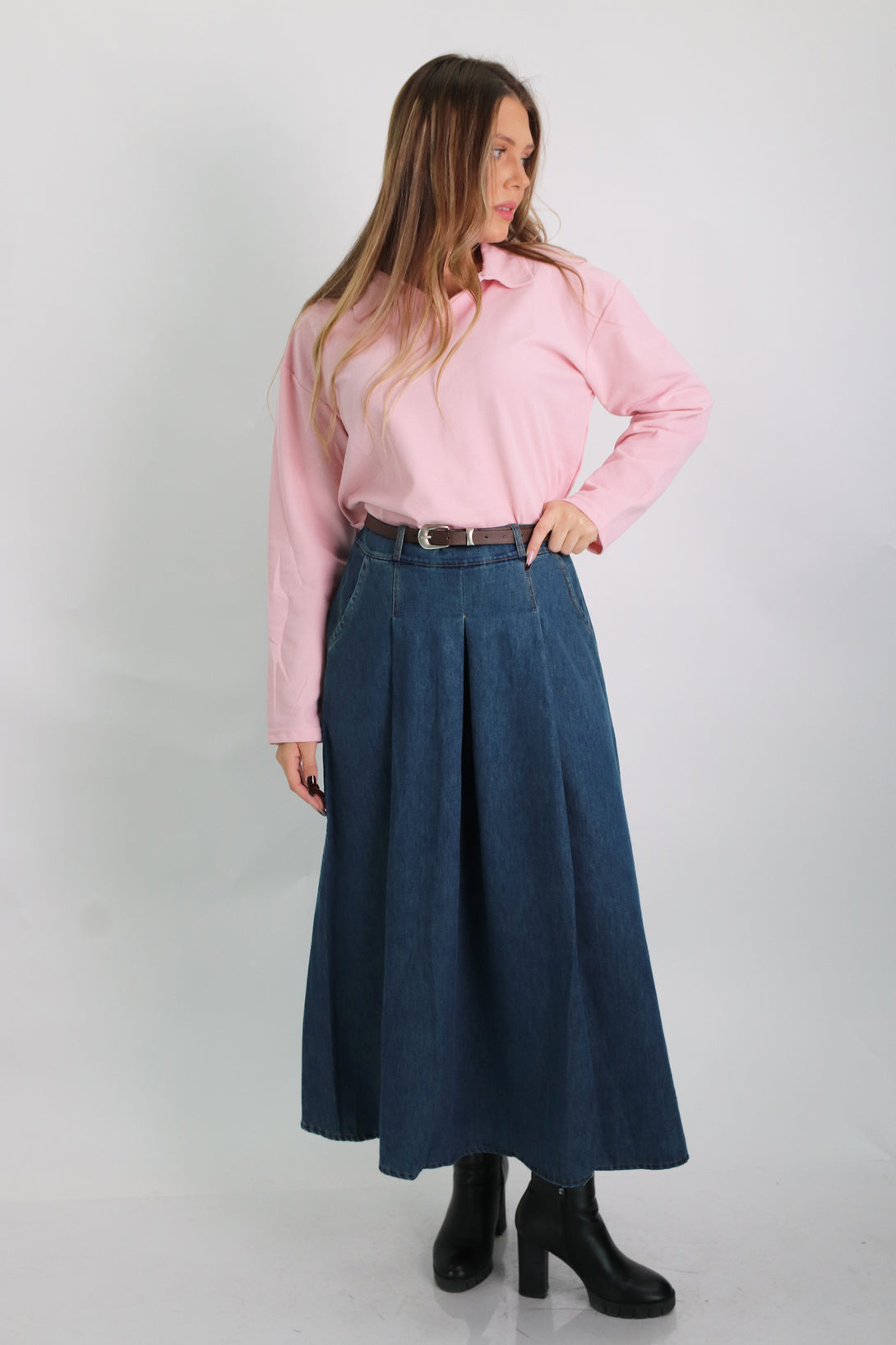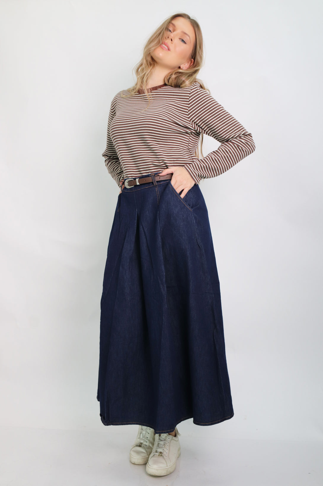 חצאית ג׳ינס מבד דק בגזרת קלוש
