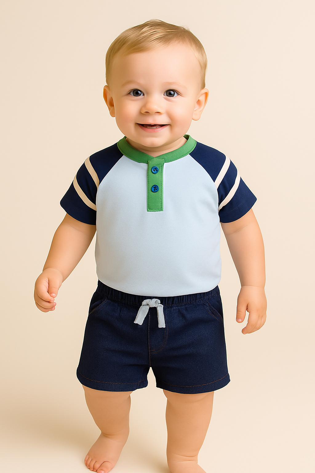 חליפה קצרה פסים תכלת-ירוק
