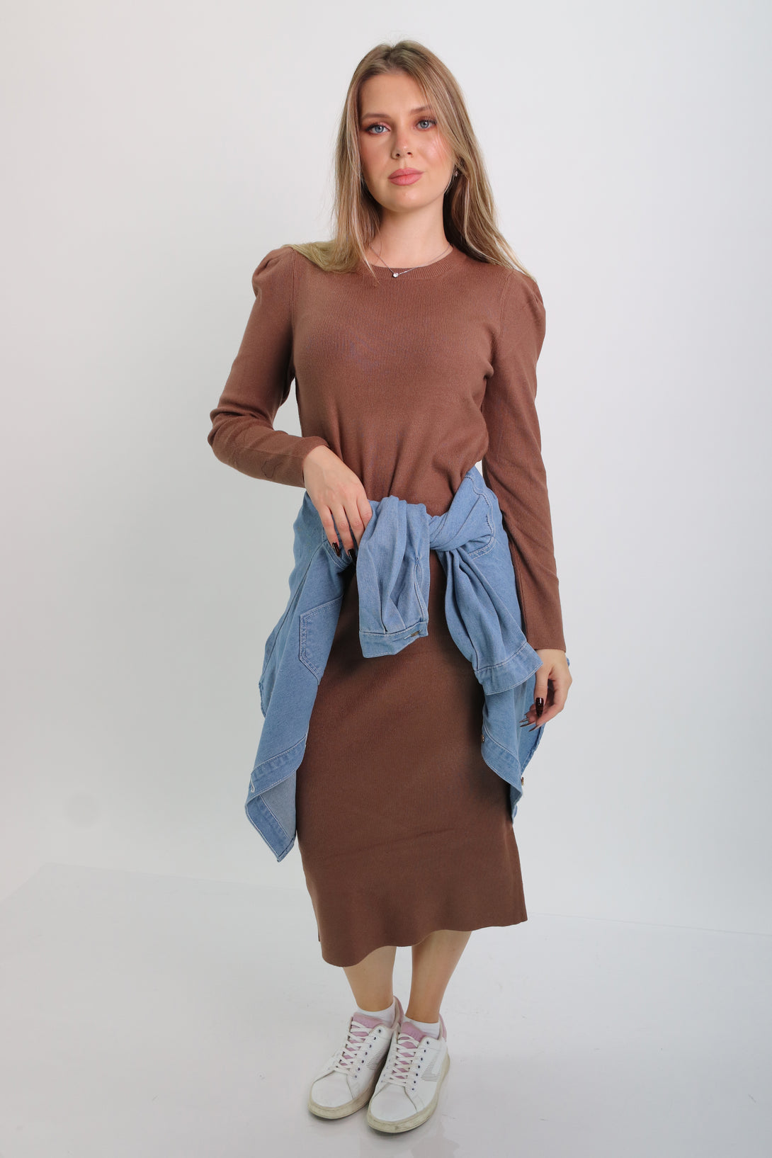 שמלת סריג בייסיק משולבת כתפיות בתפירה מיוחדת