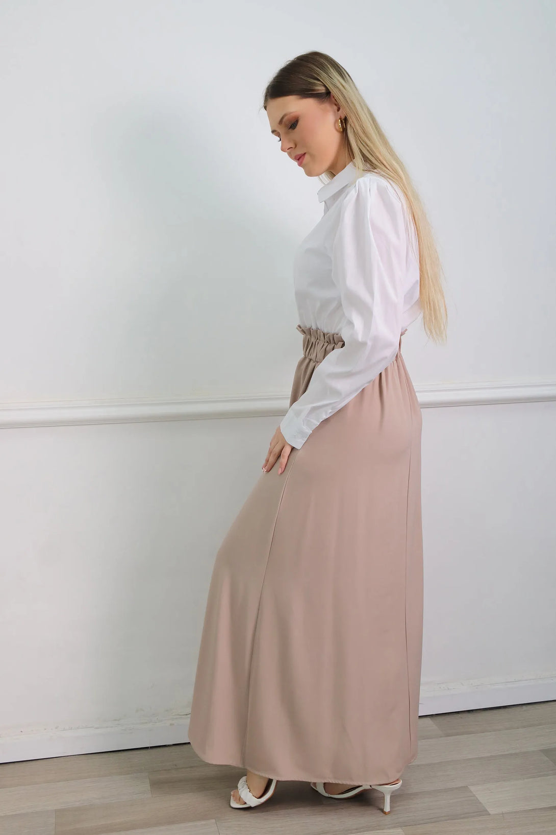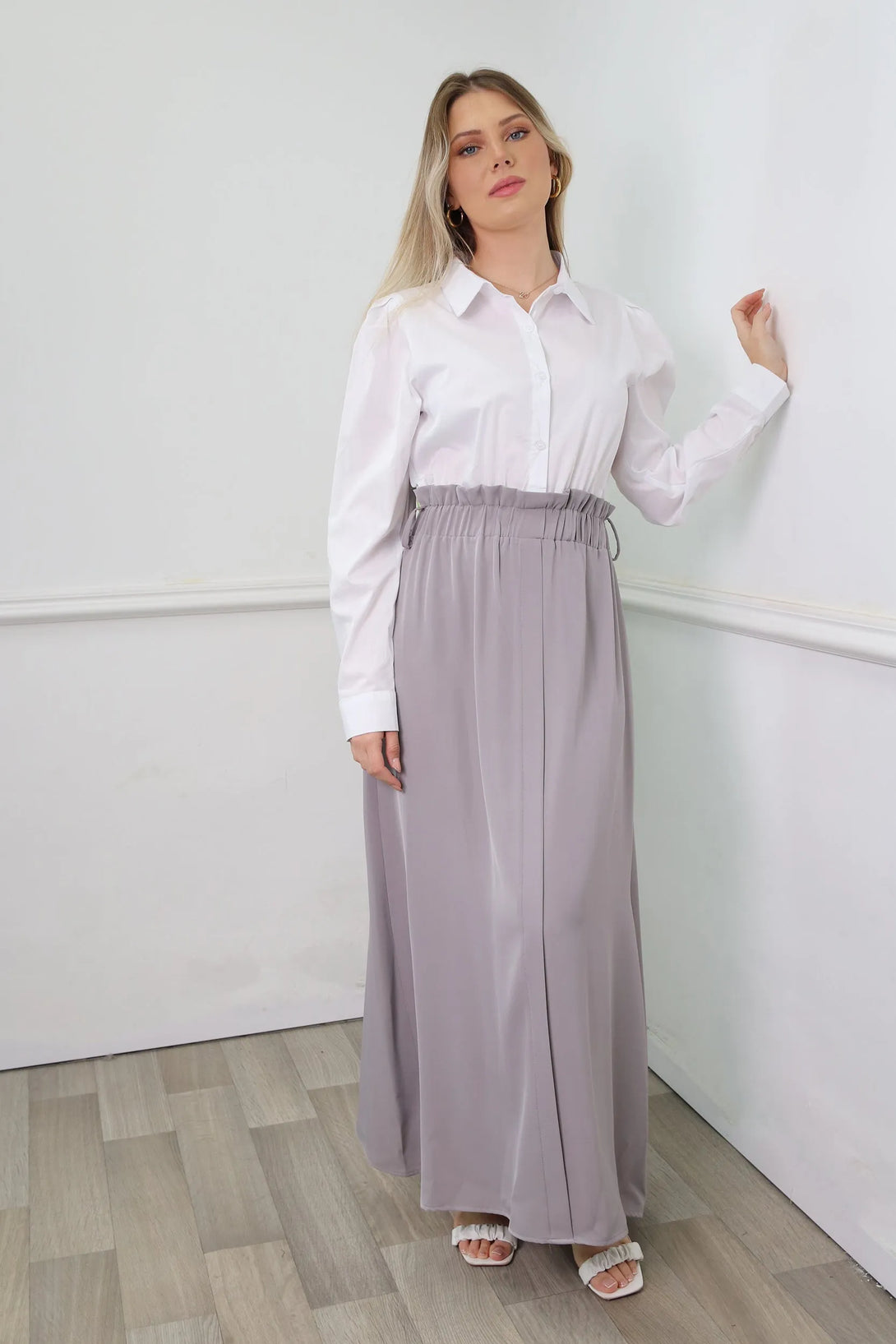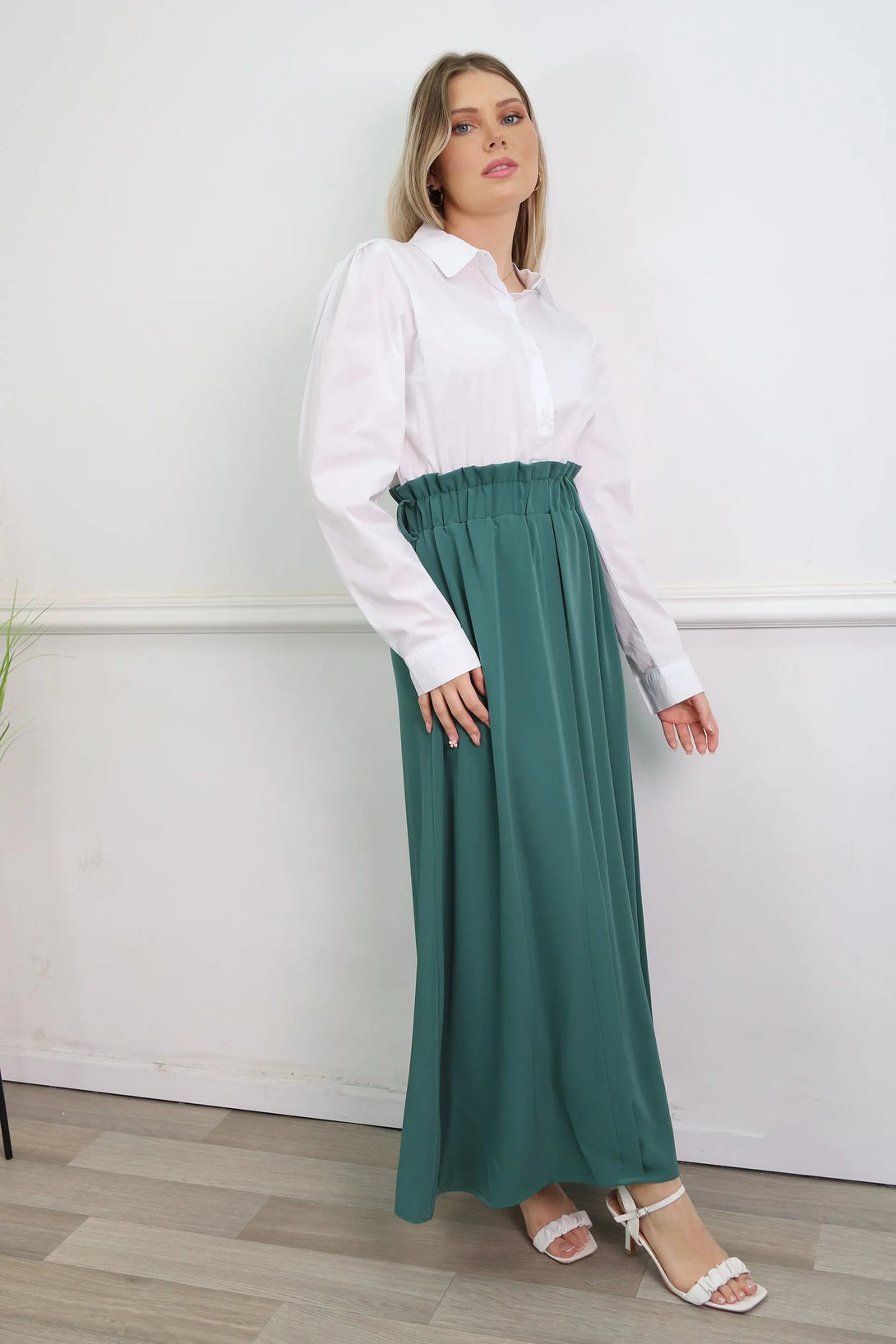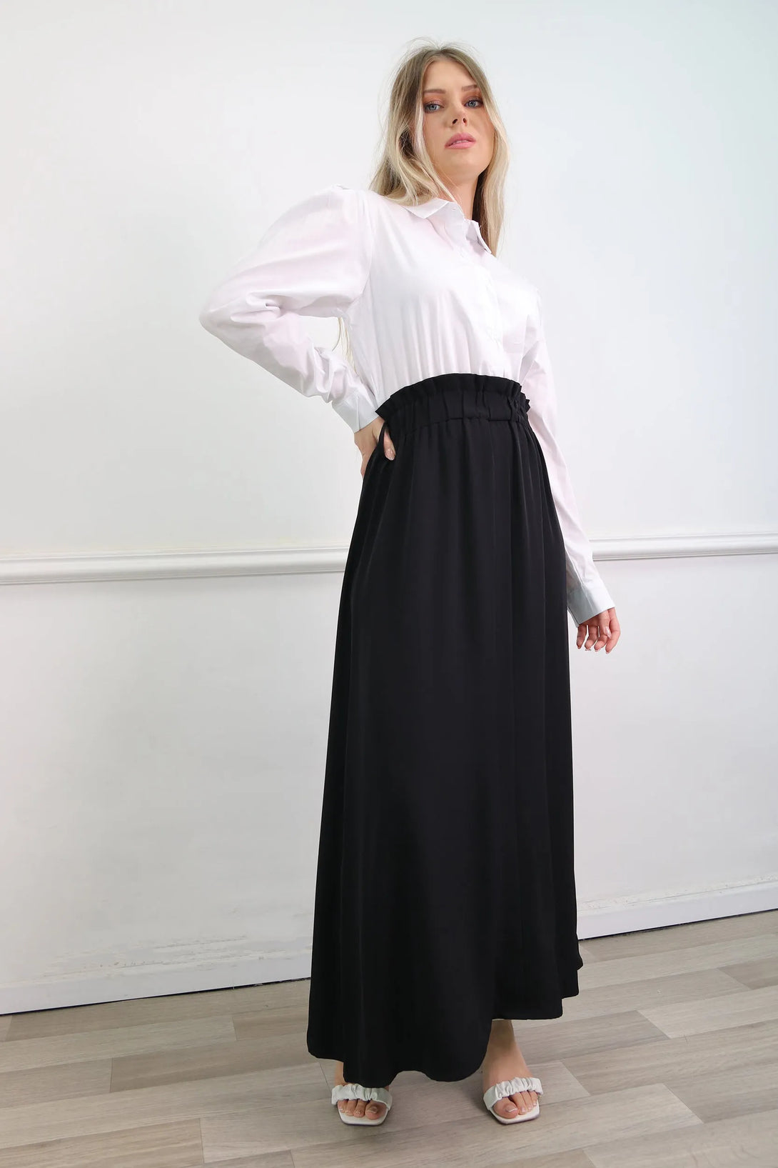שמלת מקסי משולבת דמוי חולצה מכופתרת וחצאית