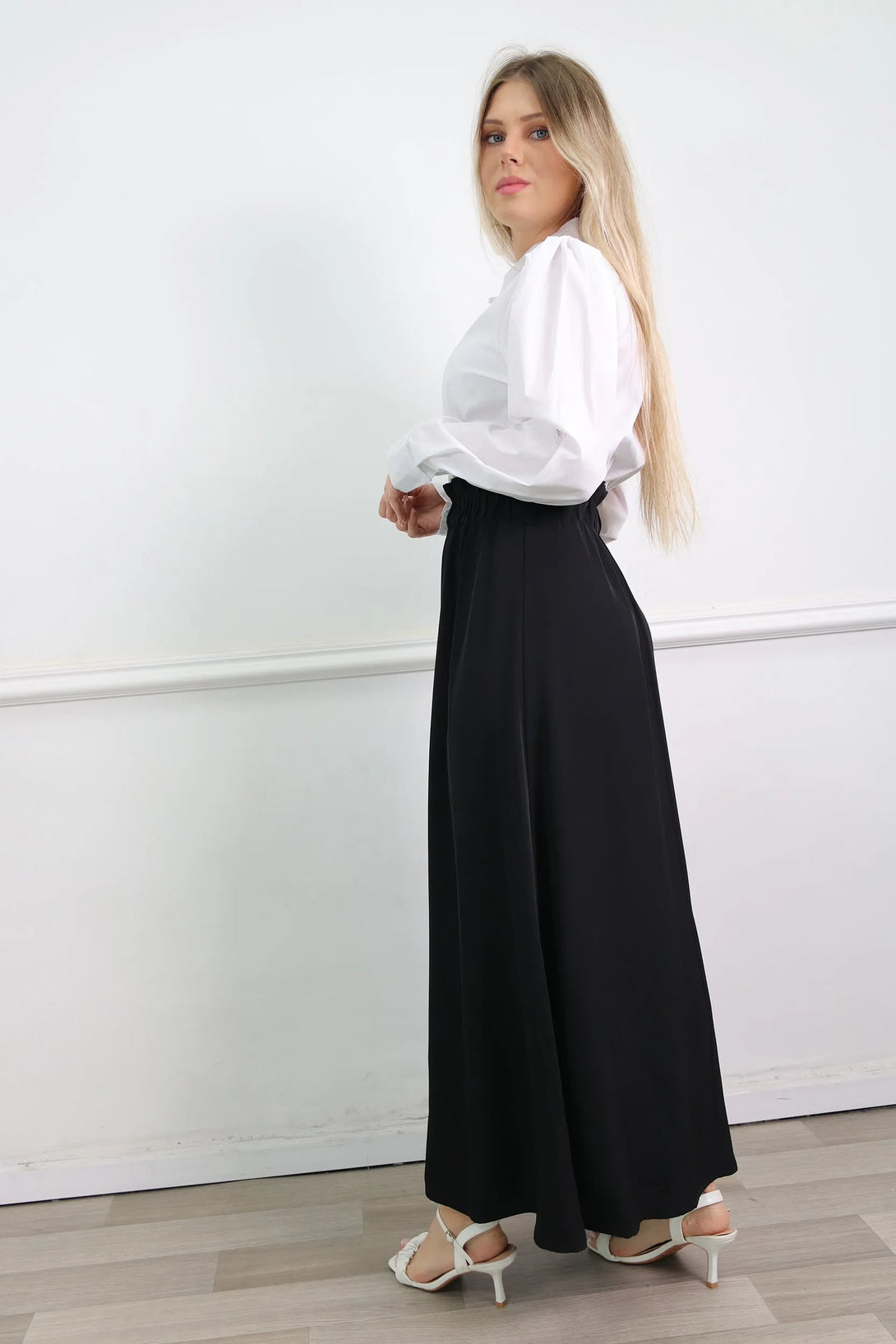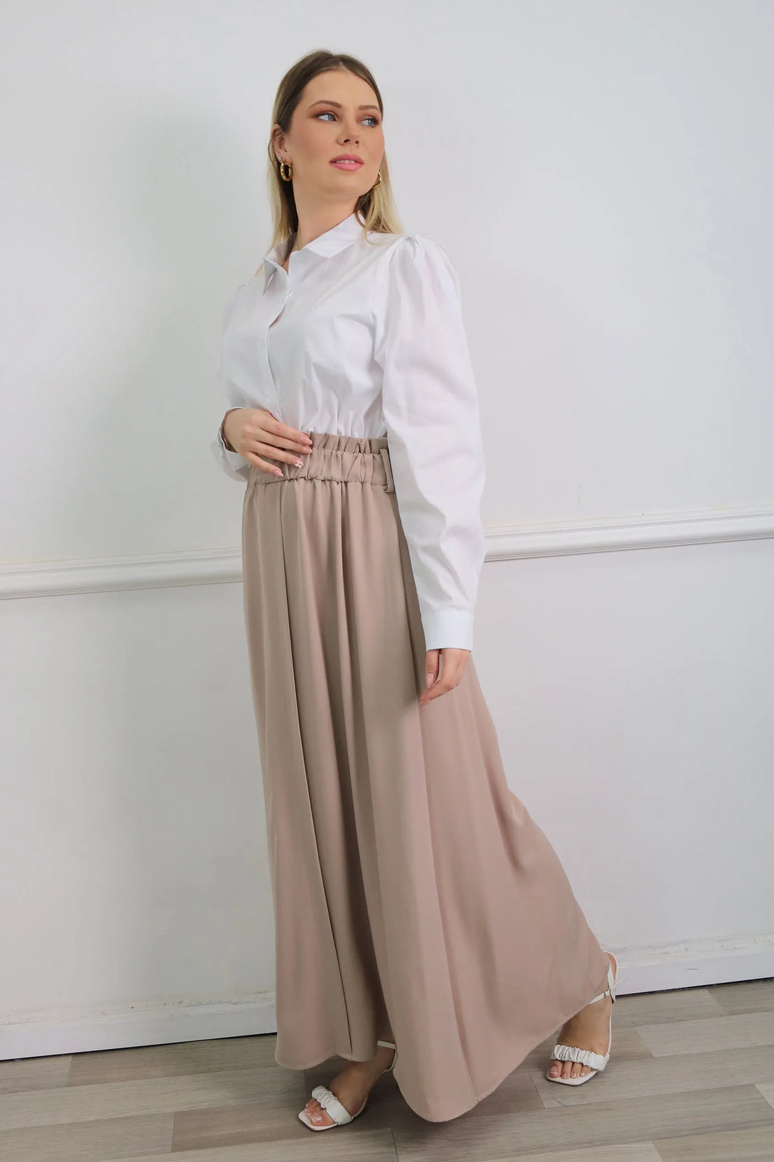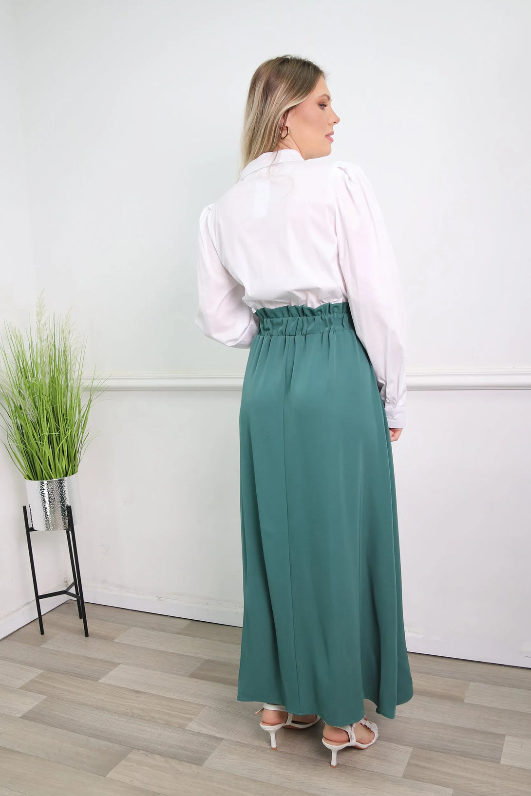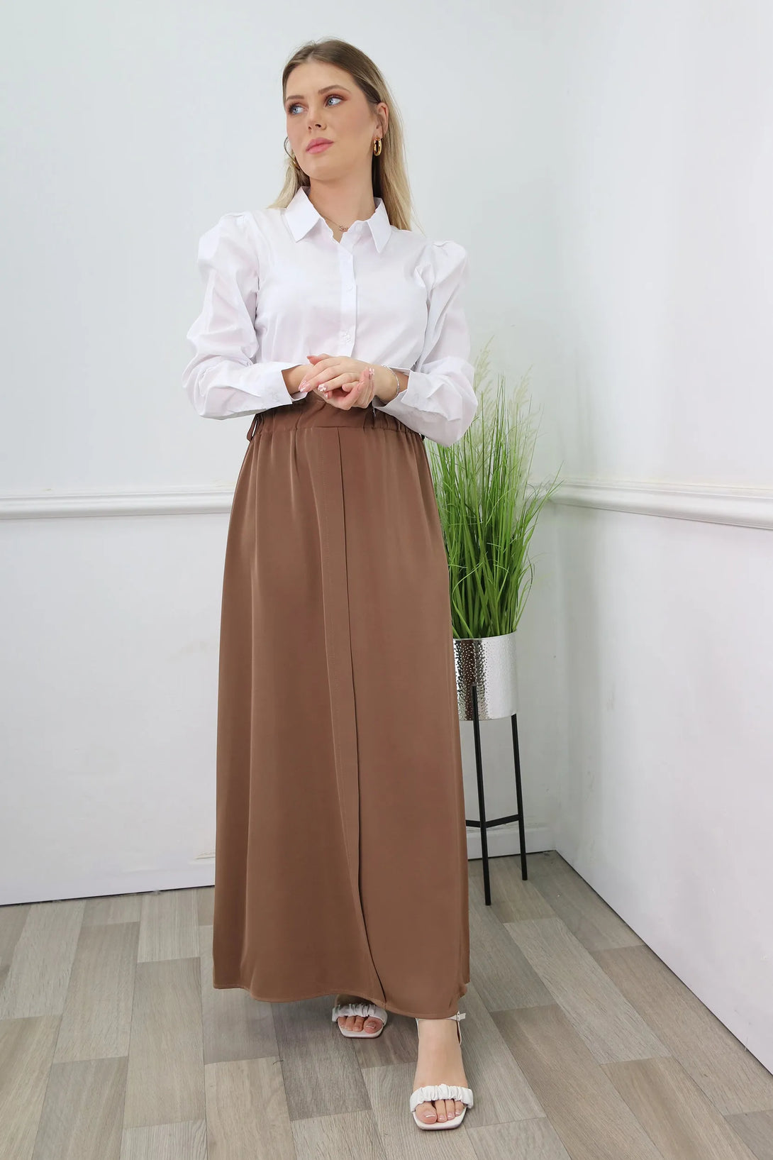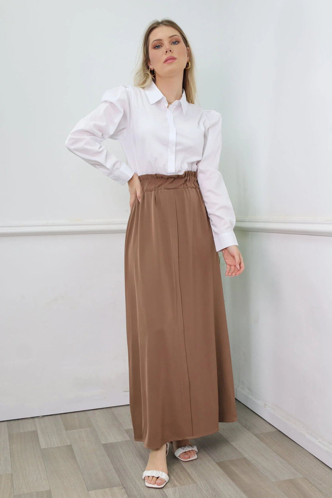 שמלת מקסי משולבת דמוי חולצה מכופתרת וחצאית