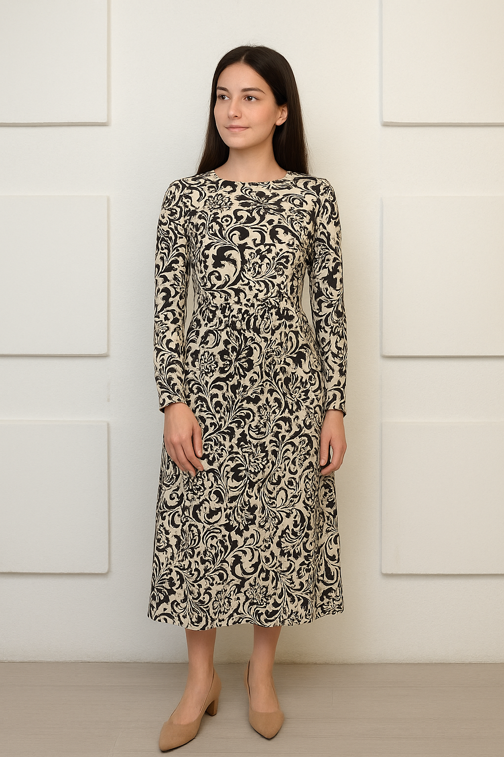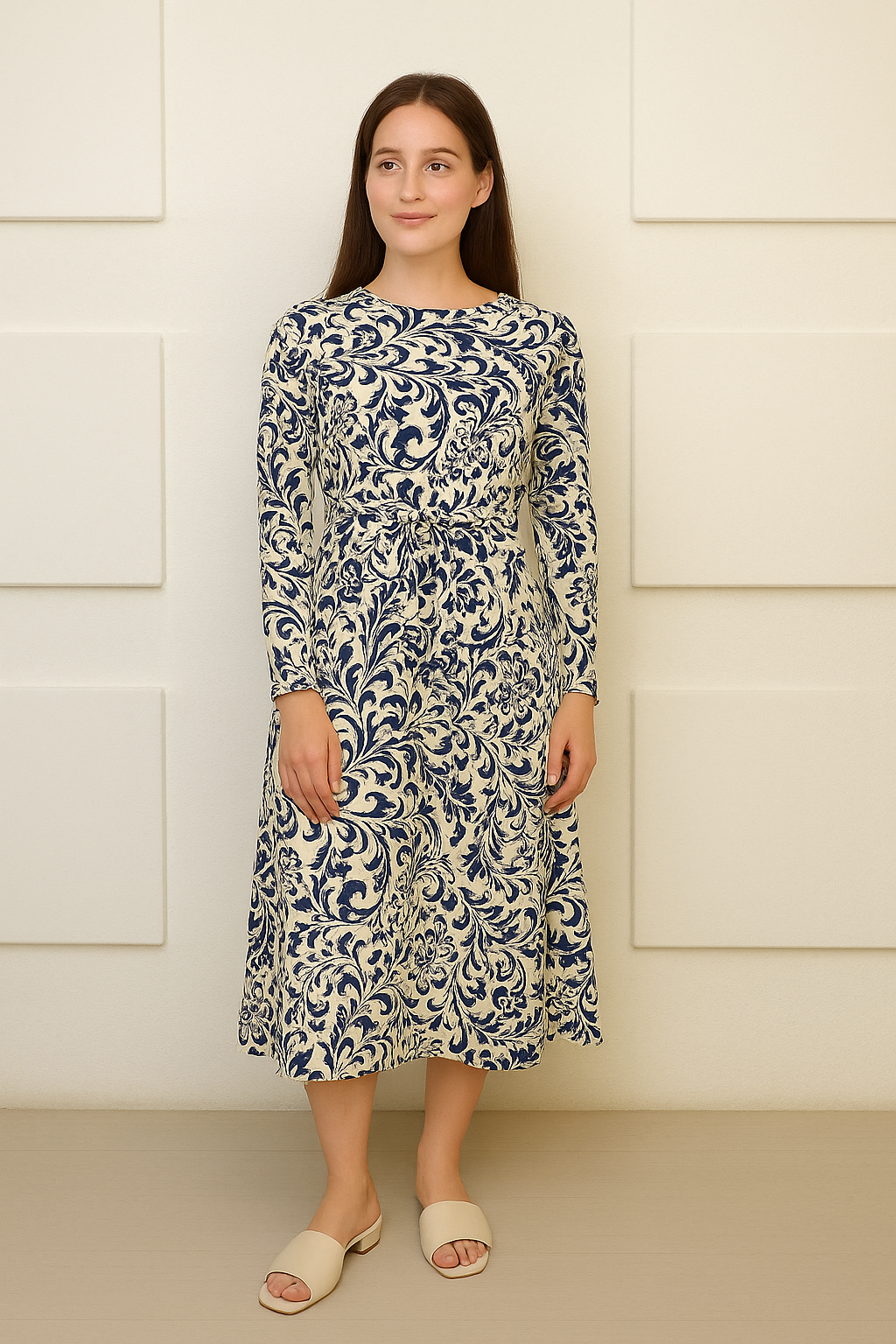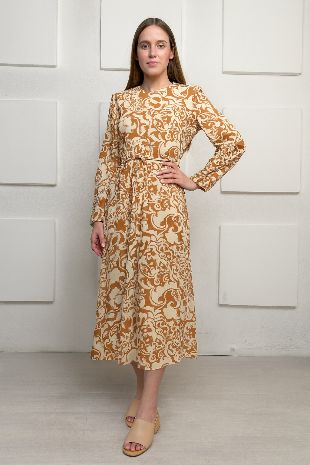 שמלת מקסי משולבת כפתורים בחזה וחגורה