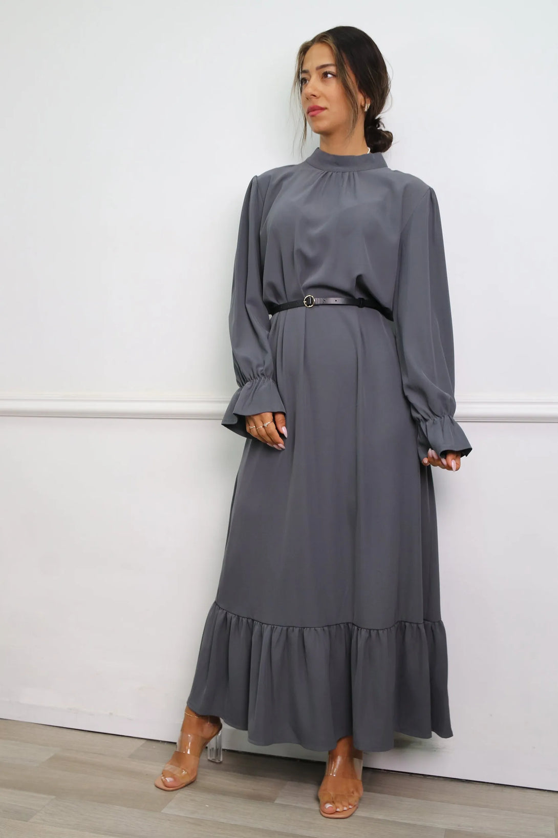 שמלת מקסי מבד כותנה במרקם מיוחד ואטום