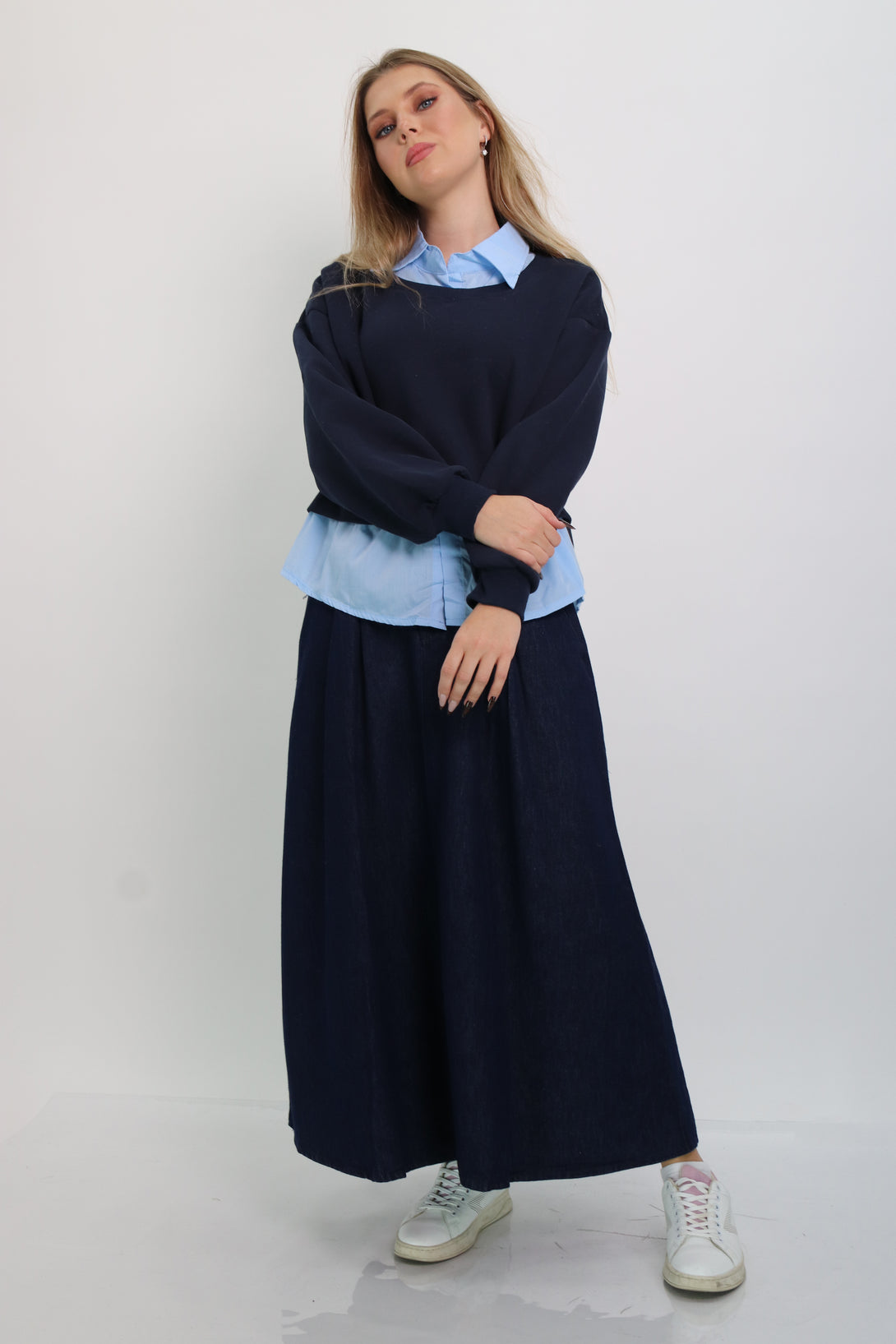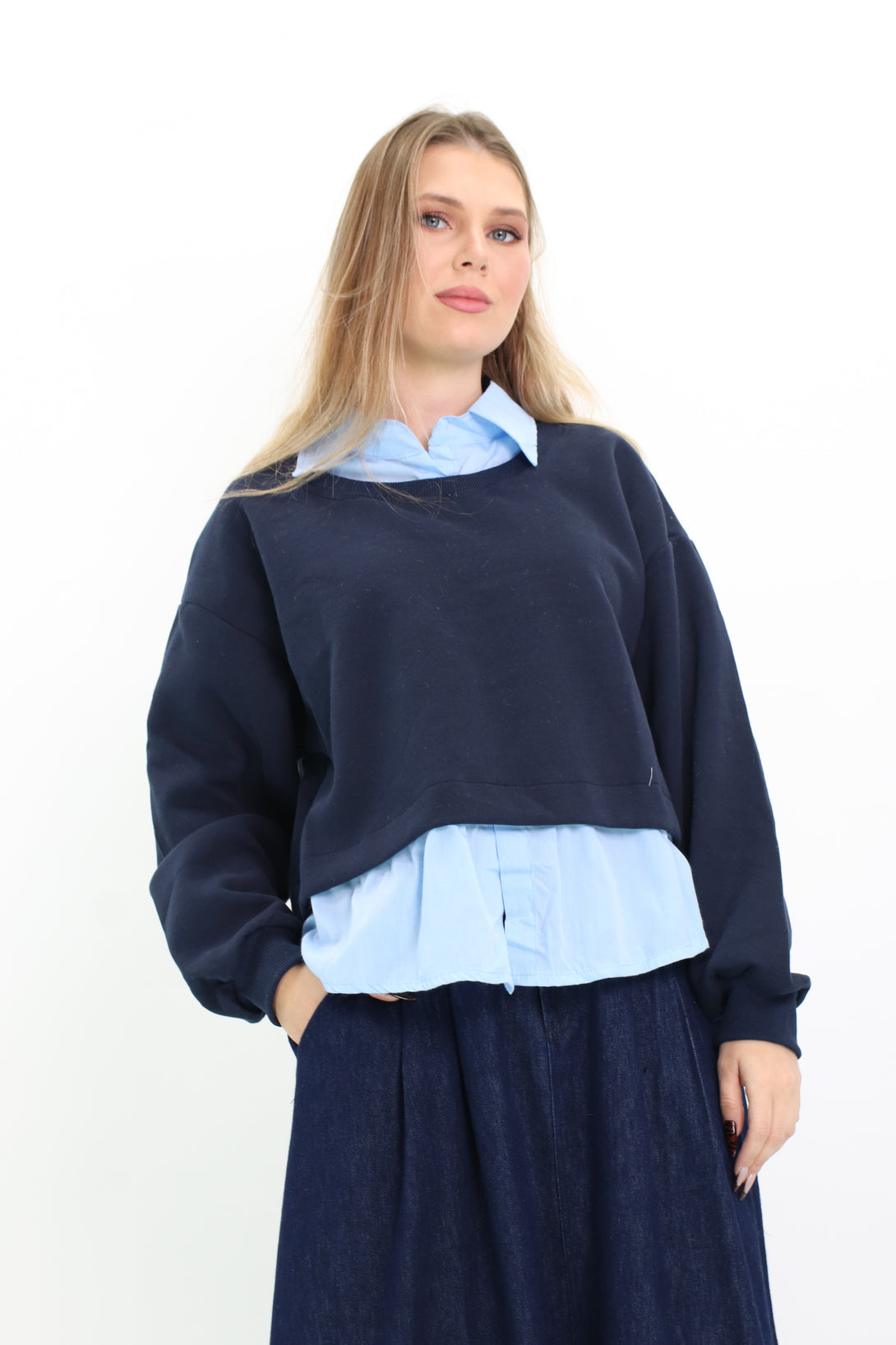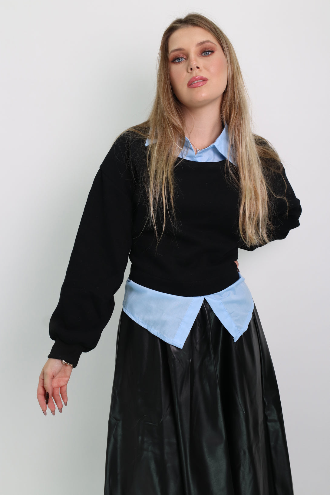 אפודת צמר משולבת דמוי חולצת אוקספורד